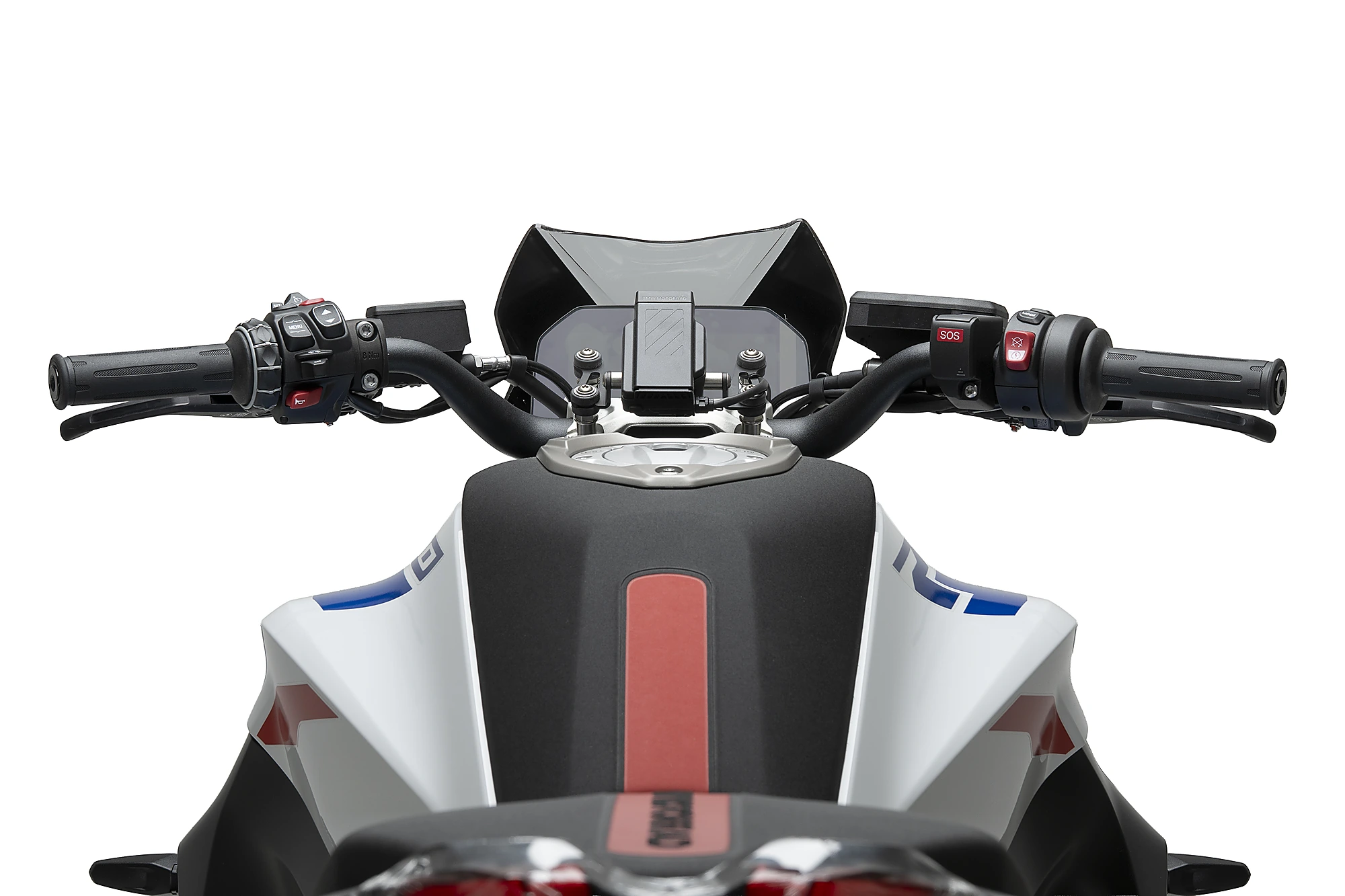 The design incorporates a central lower cut specifically developed to ensure full compatibility between the screen and the radar system. The main surface, in the form of a small screen, is intended to deflect airflow coming from the front area, reducing the pressure that directly impacts the rider’s torso without losing its compact and sporty character.