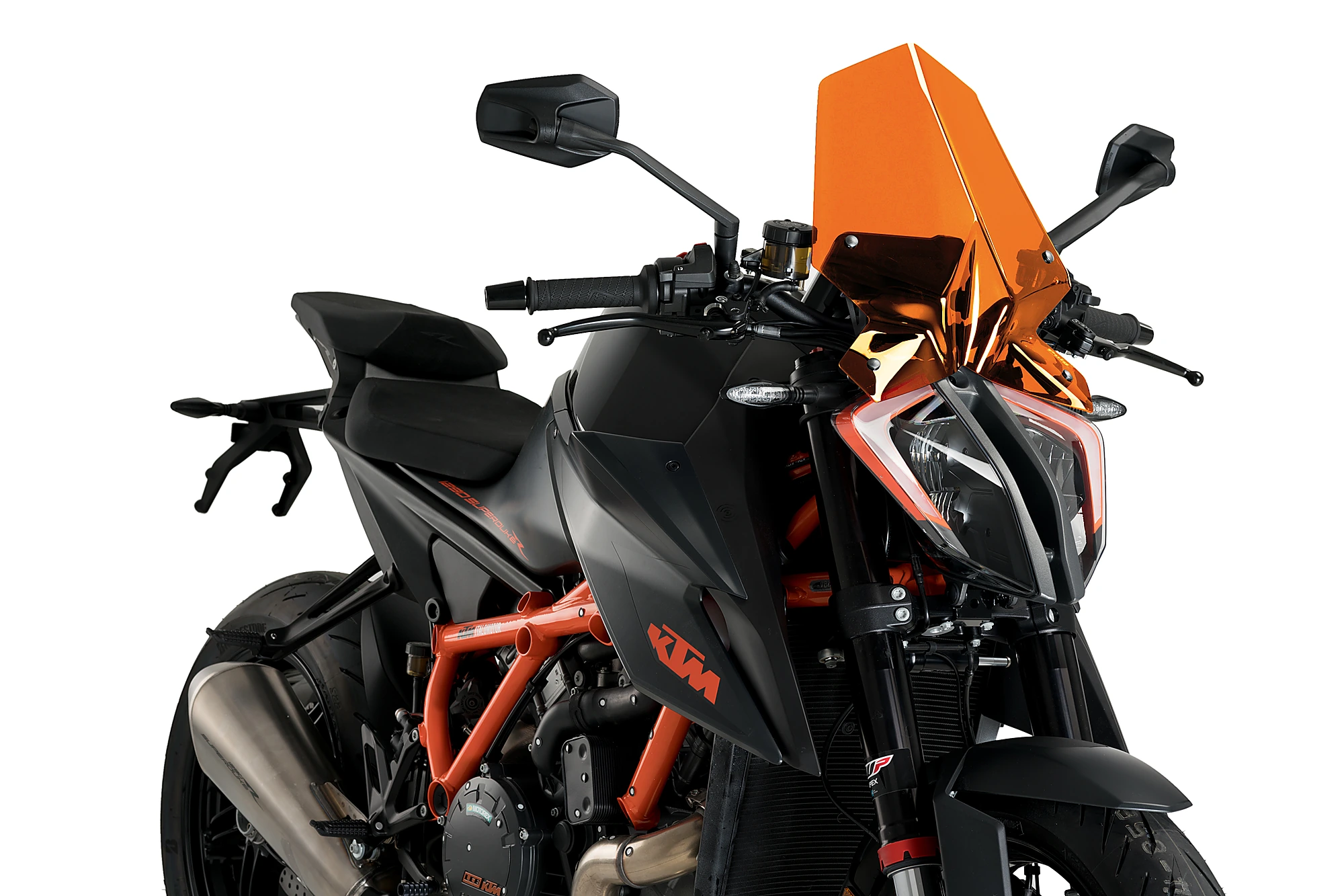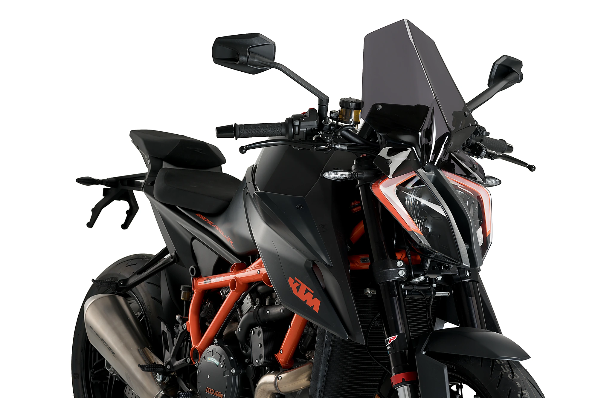 The NG Touring windshield for the KTM 1290 Superduke R adapts to your motorbike of aggressive and minimalist lines thanks to its simple but sharp shapes, which give your bike an elegant and aggressive aesthetic. This windshield adapts to your motorcycle thanks to its geometric line shapes that perfectly fits the look of this aggressive naked. Its shapes wrap the headlight on the sides, continuing the lines and creating a stylized piece that, thanks to its central edge, "cuts" the air in two and diverts it to both sides of the rider for greater comfort and less driving fatigue.