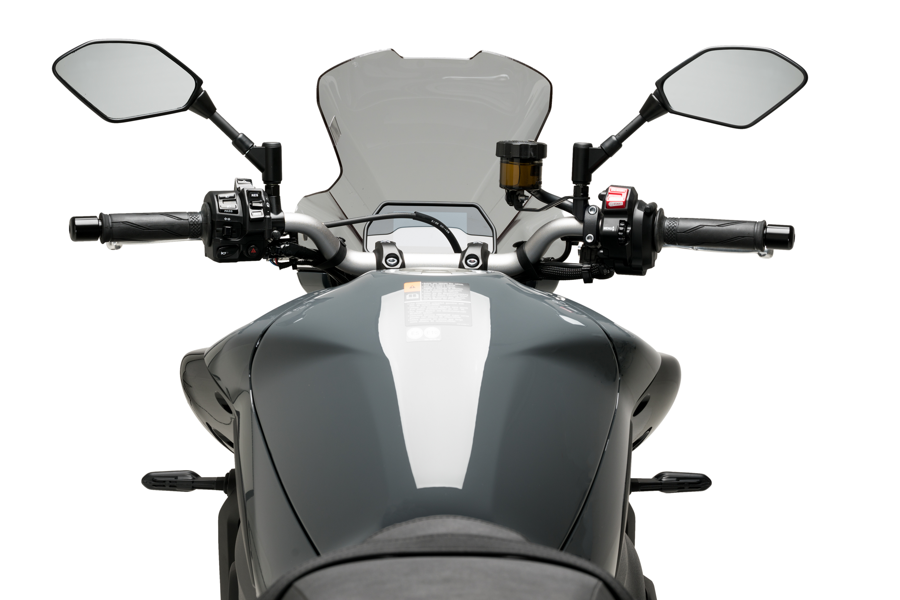 If you have a naked-type motorcycle with non-round headlights, the new generation of Puig windshields will be the best complement for your machine.