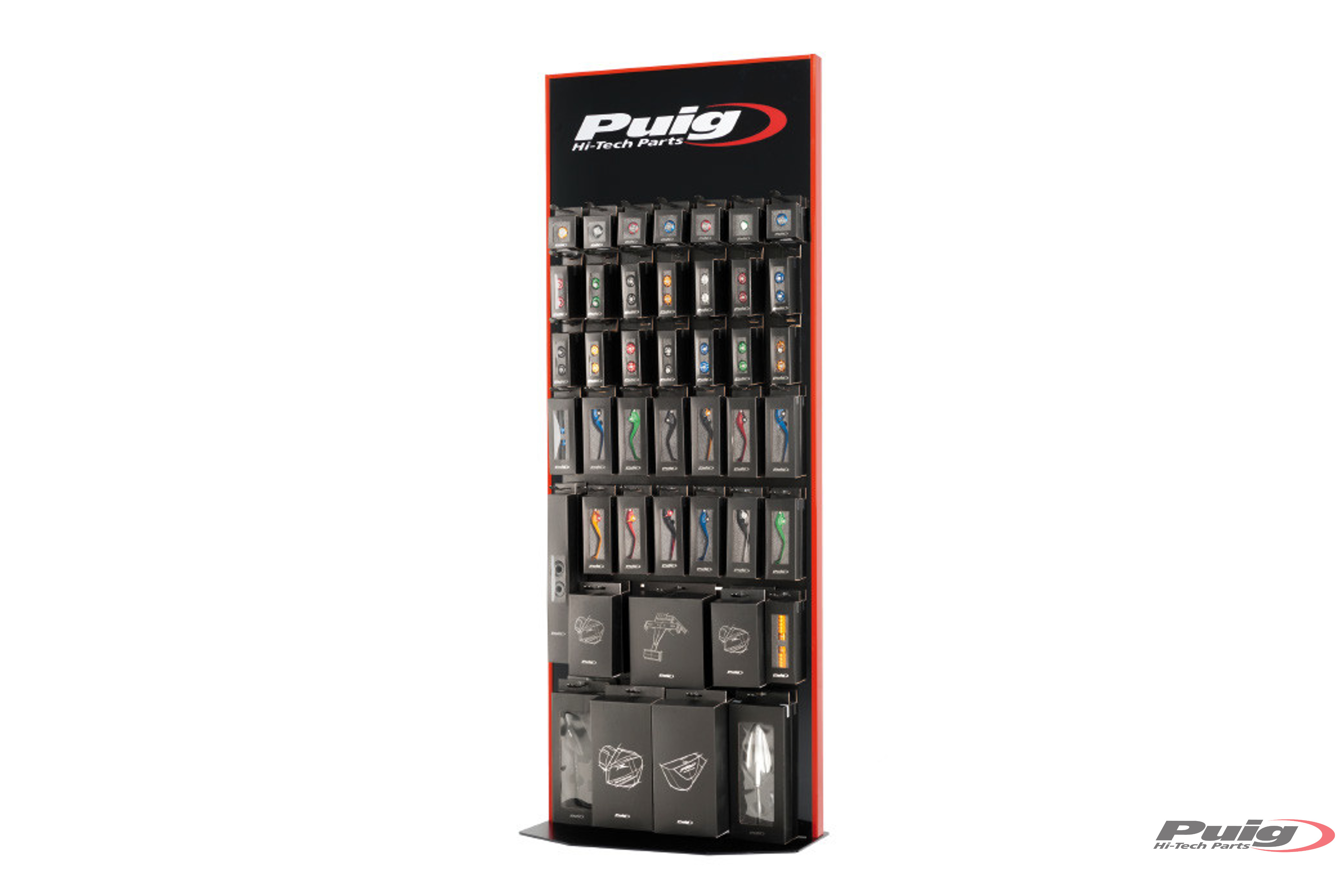 Puig presenta el nuevo expositor HI- TECH Parts para que nuestros productos luzcan de manera agradable en su establecimiento. Fabricado en acero, será la mejor opción para la presentación de los nuevos embalajes de los productos PUIG.