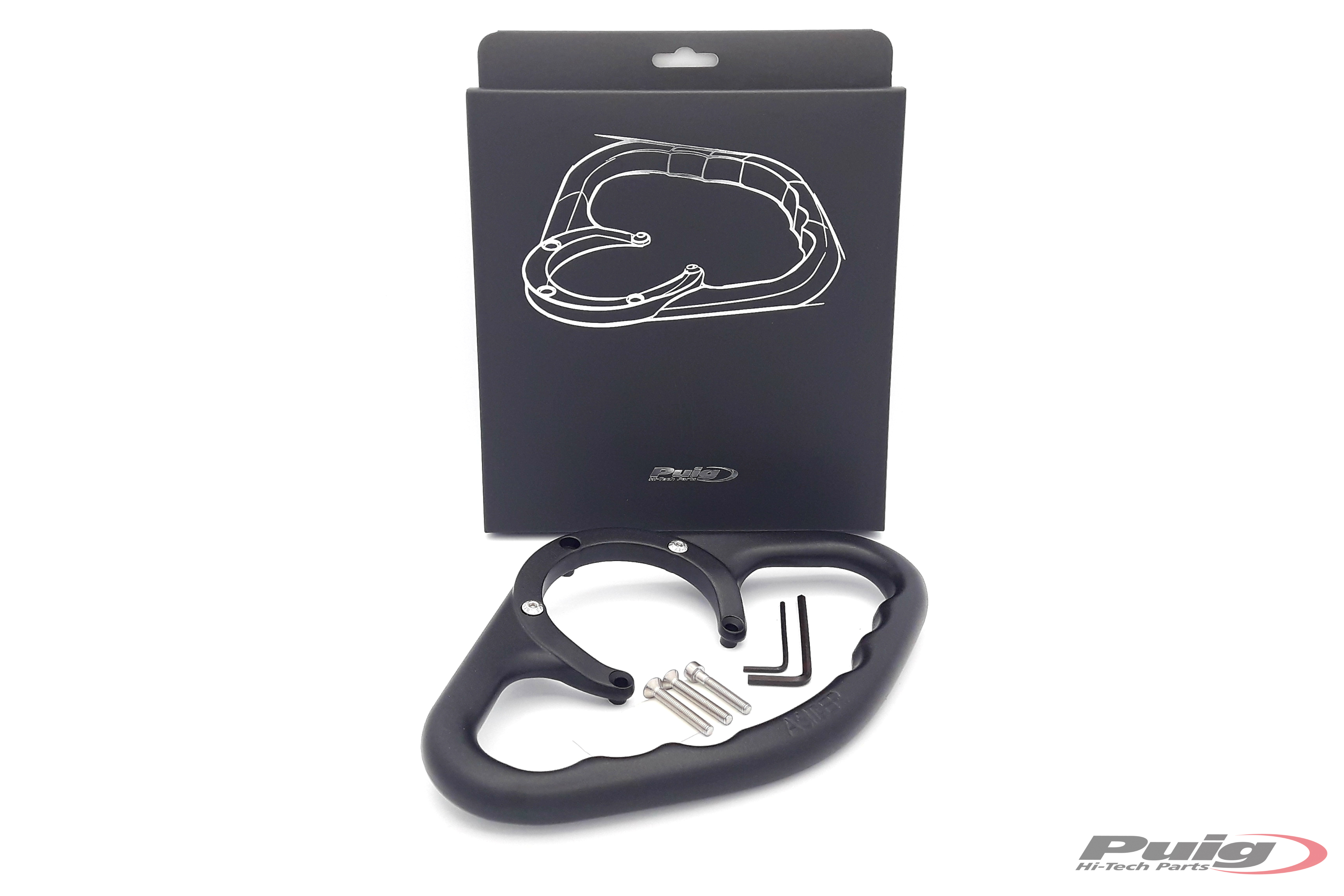 Mejora la comodidad y el agarre a la motocicleta de tus acompañantes con los asideros universales Puig. Fabricados en aluminio ligero y pintura EPOXI negra será el mejor complemento para mejorar el viaje del pasajero de tu moto, cuidando y conservando la estética de tu vehículo al máximo.