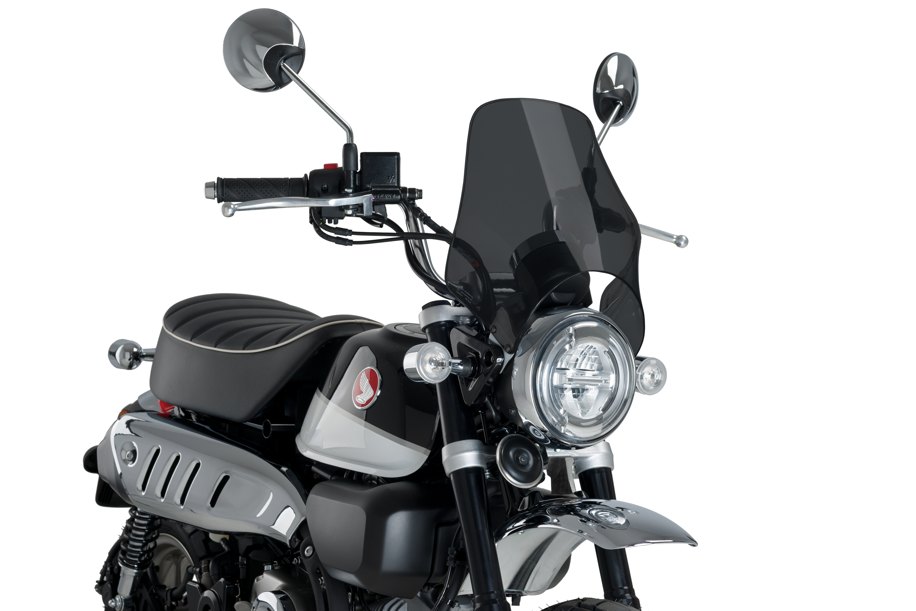 Si tu motocicleta es estilo Naked y buscas un carenabris corto para faro redondo, el carenabris Naked de la línea Puig Street Screens será tu mejor aliado.
