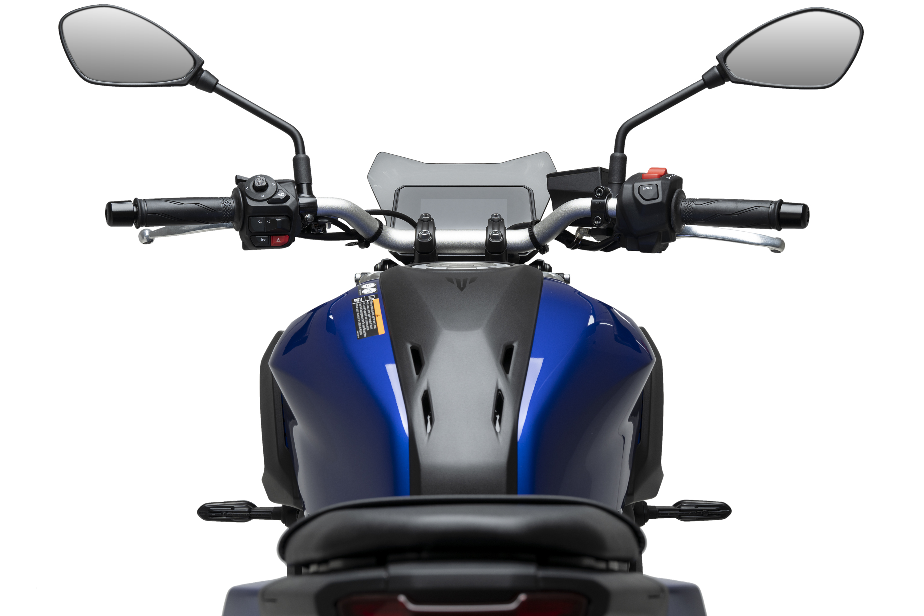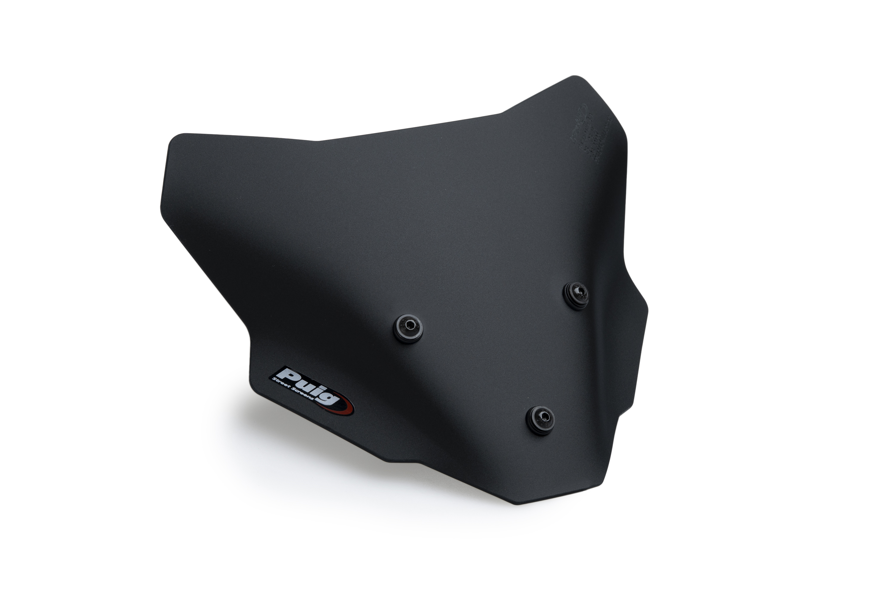 Gracias a su diseño compacto, cubre por completo el cuentaquilómetros, proporcionando una superficie aerodinámica más limpia sin comprometer el estilo. Las formas superiores actúan como "alas" que canalizan el flujo de aire hacia zonas menos críticas para el piloto, mejorando así la protección y el confort en ruta. Las líneas laterales y las formas inferiores no solo aportan rigidez estructural, sino que también refuerzan la continuidad estética con el frontal de la moto.