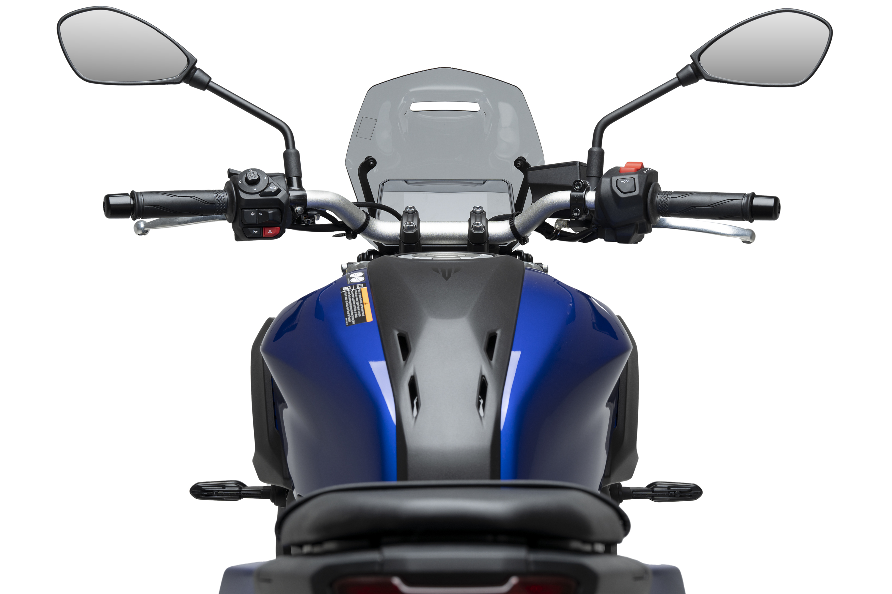 Las formas inferiores, con aspecto de pequeño deflector, aportan rigidez estructural a la pantalla y refuerzan su carácter aerodinámico, mientras que las líneas laterales armonizan con el frontal de la moto, consiguiendo un diseño fluido, equilibrado y elegante.