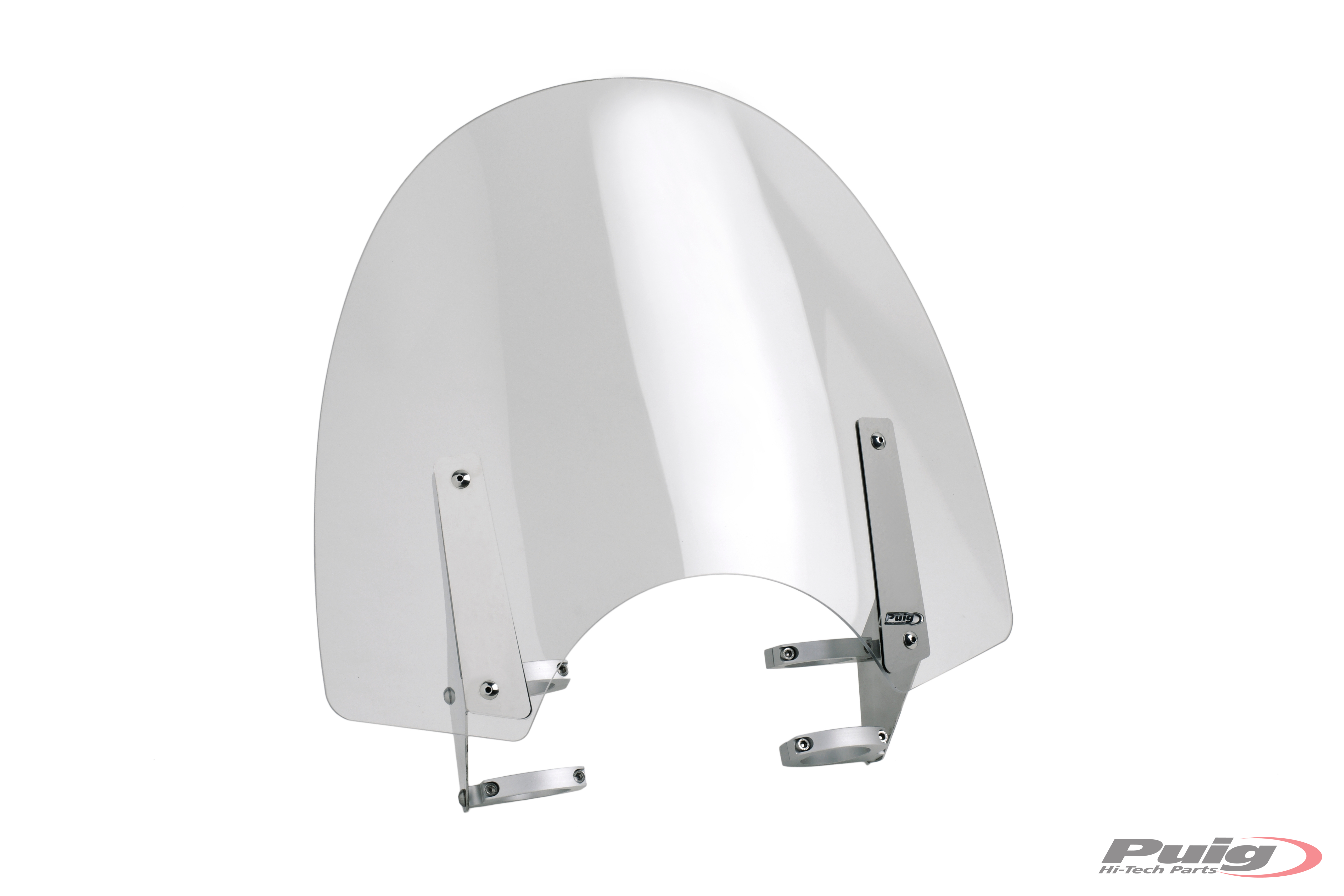 El diseño de la pieza sigue la línea creada por Puig Custom y se adecua a la perfección a este segmento de motocicleta, dada la exclusividad de su parte frontal. El carenabrís Sunset mide 555mm x 500mm, se sirve en acabado transparente y cuenta con 4 puntos de sujeción para adherirla al frontal de la moto. Se trata de una pieza homologada con certificación TÜV y ABE38007.