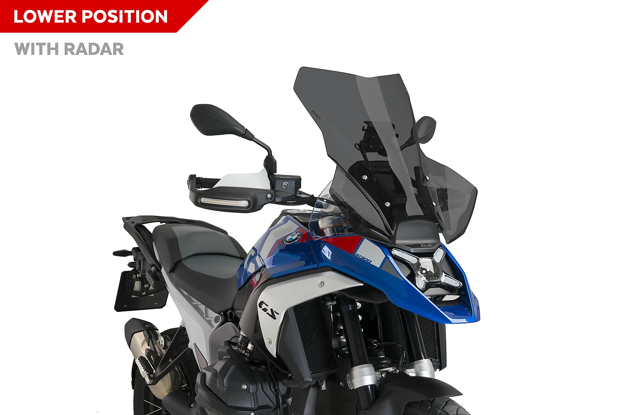 Siendo 170 mm más alta que la pantalla original, la cúpula Touring de Puig mejora notablemente la protección frente al viento y permite reducir las turbulencias que se generan especialmente en la zona de los antebrazos y del casco del piloto. Su diseño rodea la zona del radar y presenta aristas muy definidas que aportan una estética más agresiva, acorde con las nuevas líneas de la BMW R1300GS, además de proporcionar una elevada rigidez estructural a la pieza.