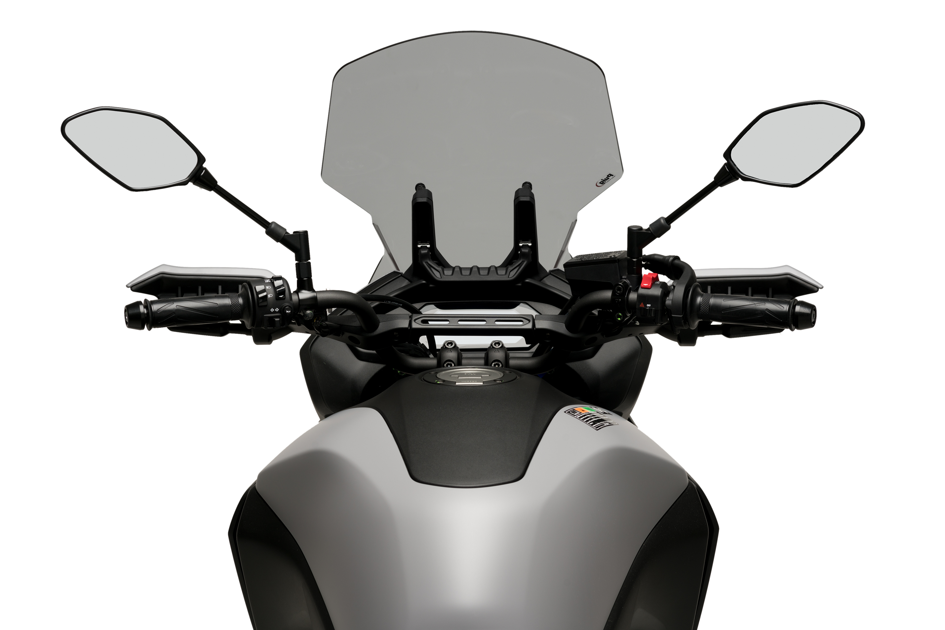 Esta pieza cumple con los estándares de producción de Puig Hi-Tech Parts, fabricada en material Acrílico CN de alta calidad, con protección UV y con un grosor de 4 milímetros. Para ofrecer un plus de seguridad y elegancia, todo el contorno de la pieza dispone de un canto redondeado con un radio de 2mm.