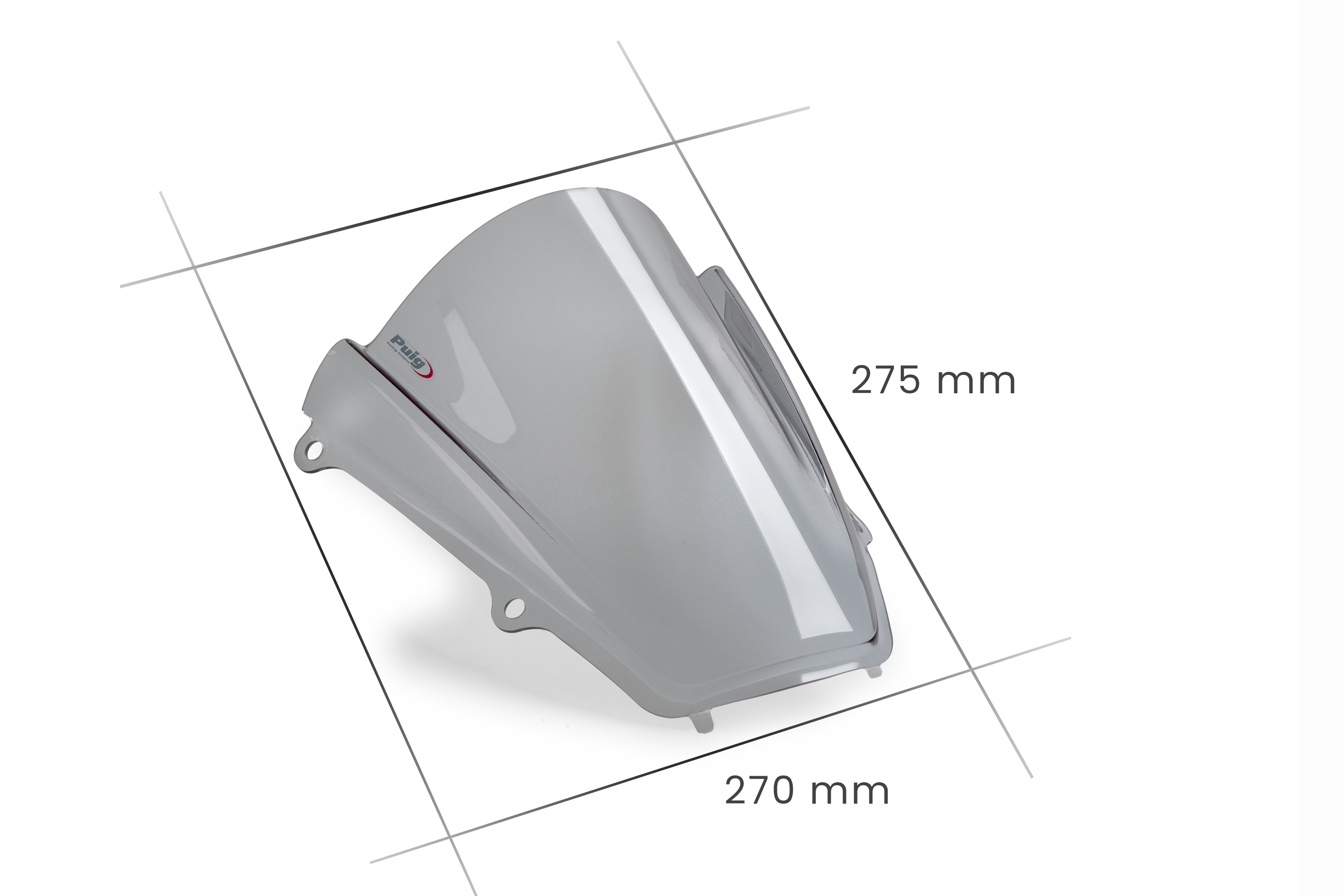 Con unas medidas totales de 270mm de ancho por 275mm de largo, la cúpula Z-Racing de Puig es 40mm más alta que la cúpula original de la Honda CBR600RR.