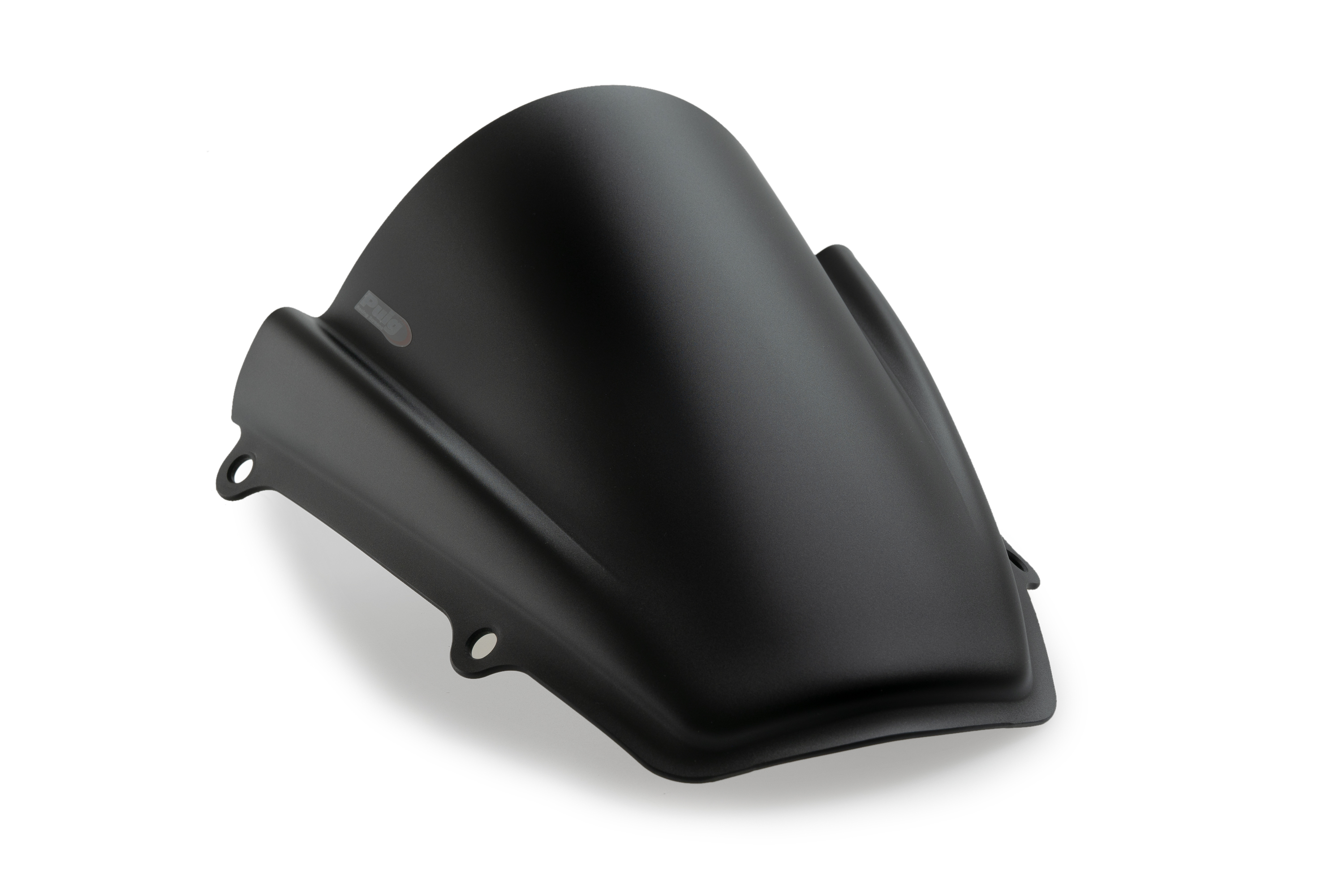 Desarrollada con la tecnología del túnel del viento virtual para obtener el mejor coeficiente aerodinámico posible, su diseño de doble burbuja incorpora canalizaciones en forma de Z que desvían de manera efectiva el aire que impactaría directamente contra el piloto hacia los laterales, aportando un mejor confort en la conducción y reducción de la fatiga, sin afectar el Cx del conjunto.