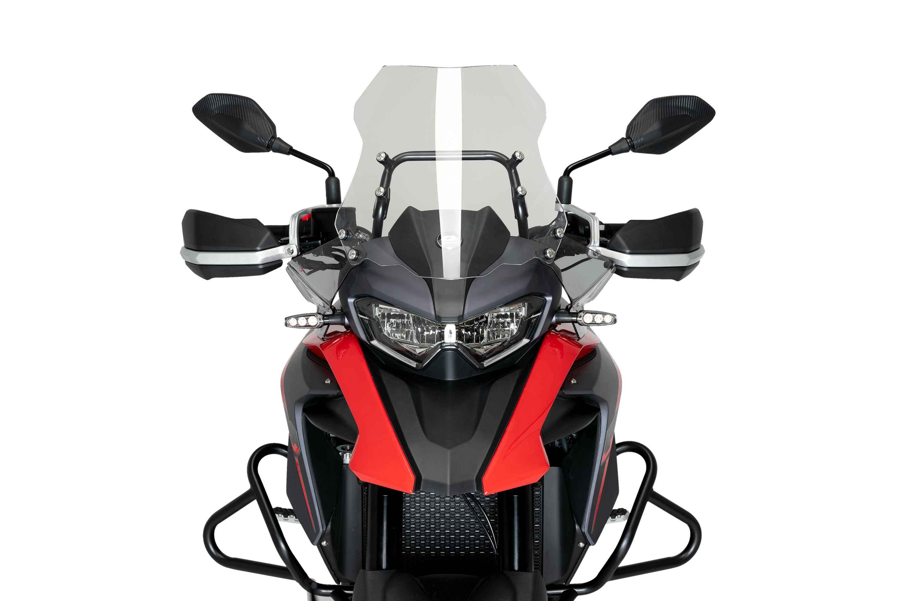 Los deflectores frontales son compatibles con los paramanos originales y extensiones de paramanos Puig, así como todas las pantallas Puig para la QJ Motor SRT 550 2023.
