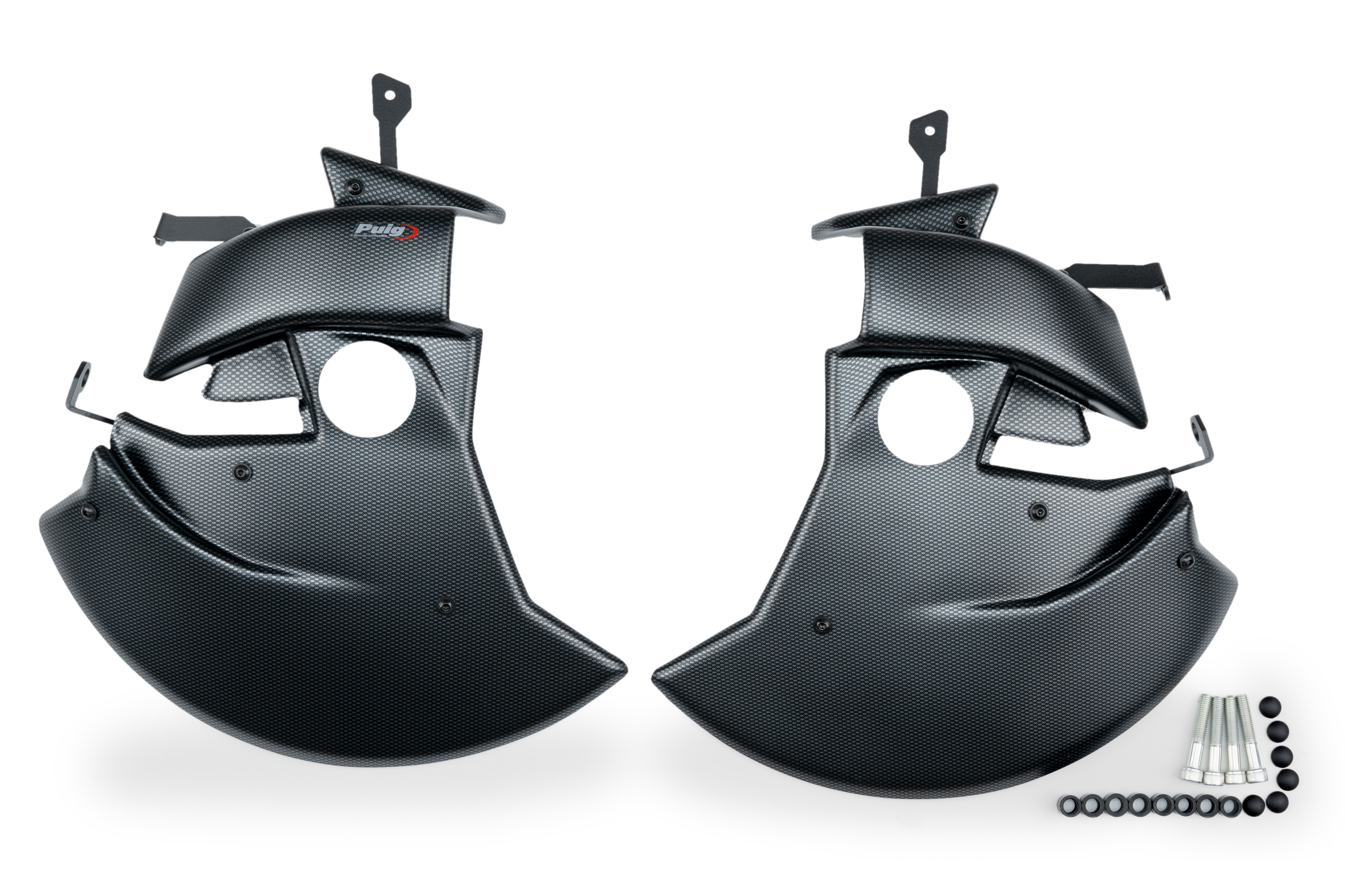 Realizado y diseñado en Barcelona con las últimas tecnologías en el moldeo de plásticos, beneficiándose de la experiencia de Puig en la alta competición. Este sistema se compone de dos tapas de plástico ABS de alta calidad, una para cada conjunto de disco y pinza. Estas tapas crean un canal que captura el aire, lo compacta y acelera, dirigiéndolo directamente sobre las pastillas y el disco de freno.