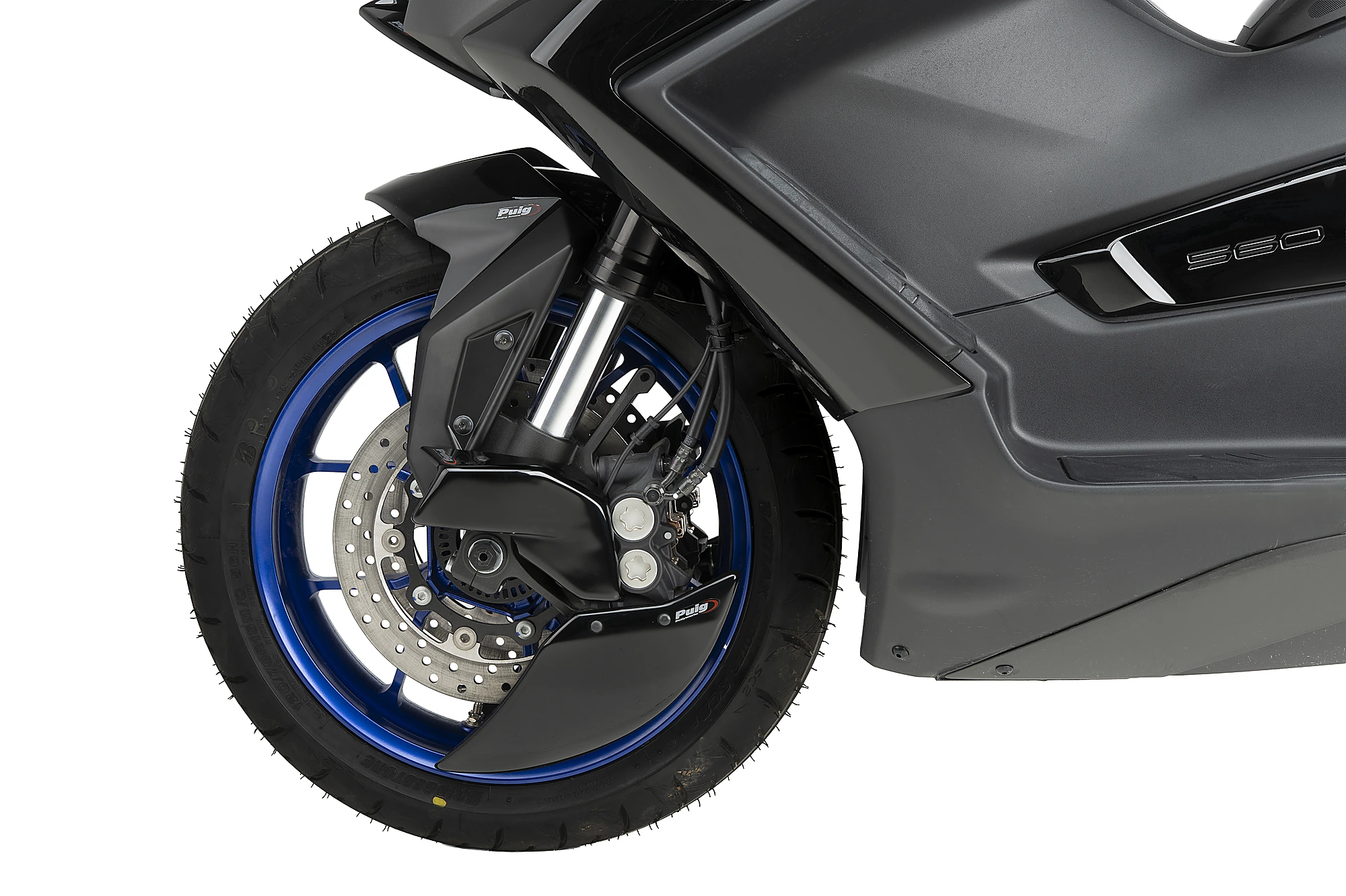 El guardabarros delantero presenta unas dimensiones considerablemente más compactas que el original, manteniendo en todo momento la funcionalidad y el nivel de protección necesarios para una motocicleta de líneas deportivas y elegantes.