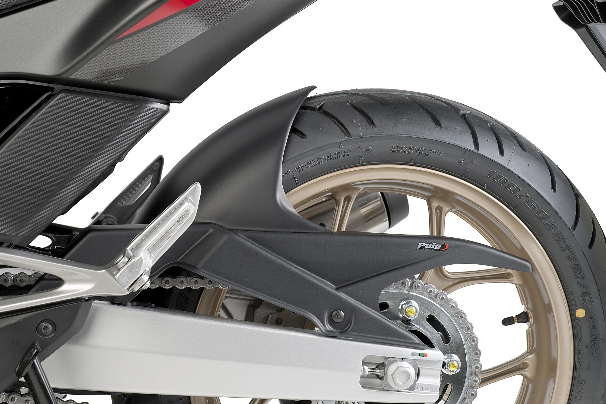 En este caso, Puig da la posibilidad de escoger entre tres modelos diferentes de guardabarros para personalizar la motocicleta a nuestro antojo. Guardabarros trasero “S”, ideal para modelos Naked; guardabarros trasero tipo “R”, específico para motocicletas R y guardabarros trasero con soporte de aluminio, diseño rompedor con soportes de aluminio de inyección fijado al basculante de la moto, específicamente creado para modelos Crosstourer.
