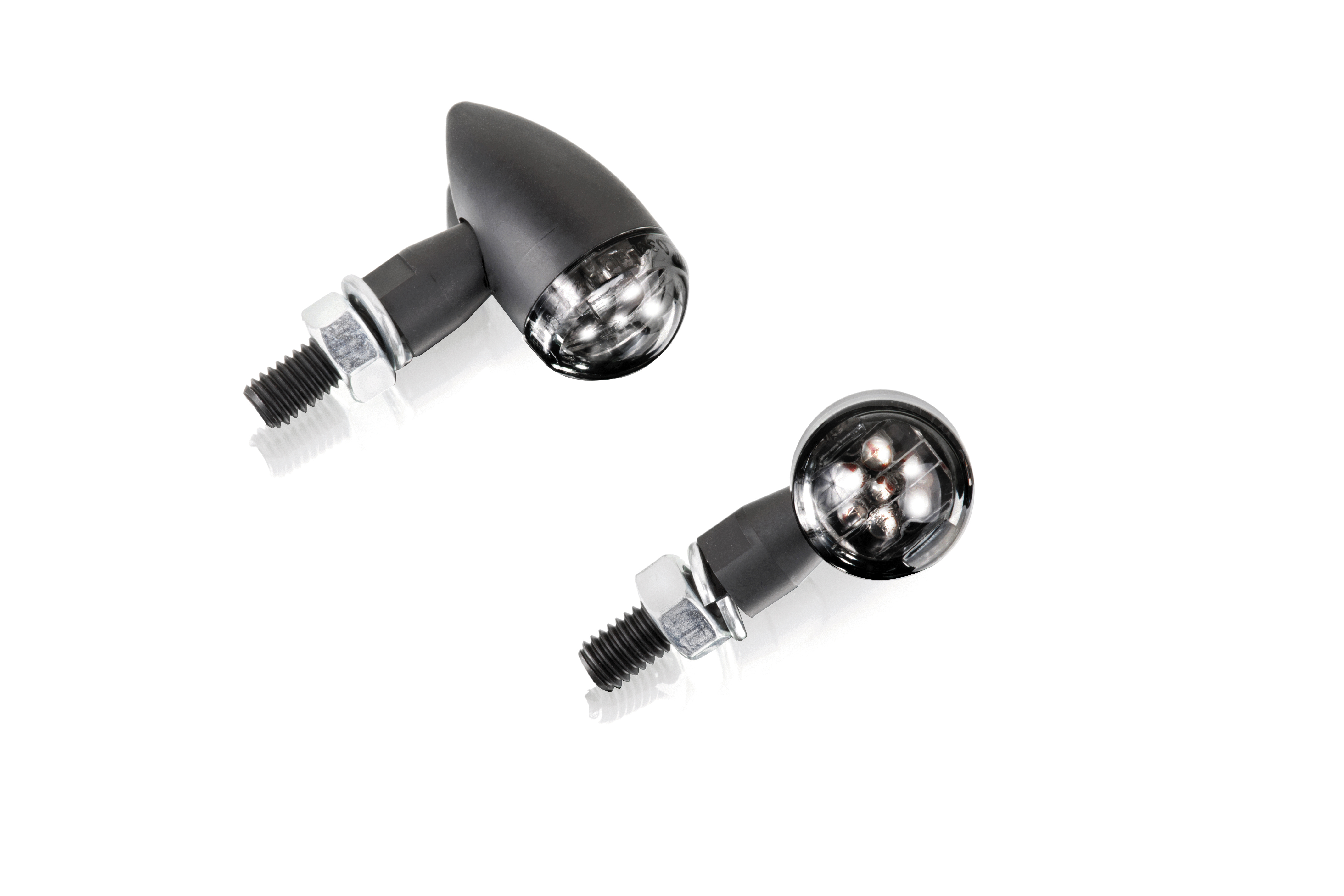 Sustituye los intermitentes originales de tu moto por los intermitentes universales Tiny de Puig. Intermitentes en color negro y con luces LED, se diferencian del resto de su gama por incorporar cristales en acabado ahumado y su tamaño reducido (27x34,20mm). Función intermitente.