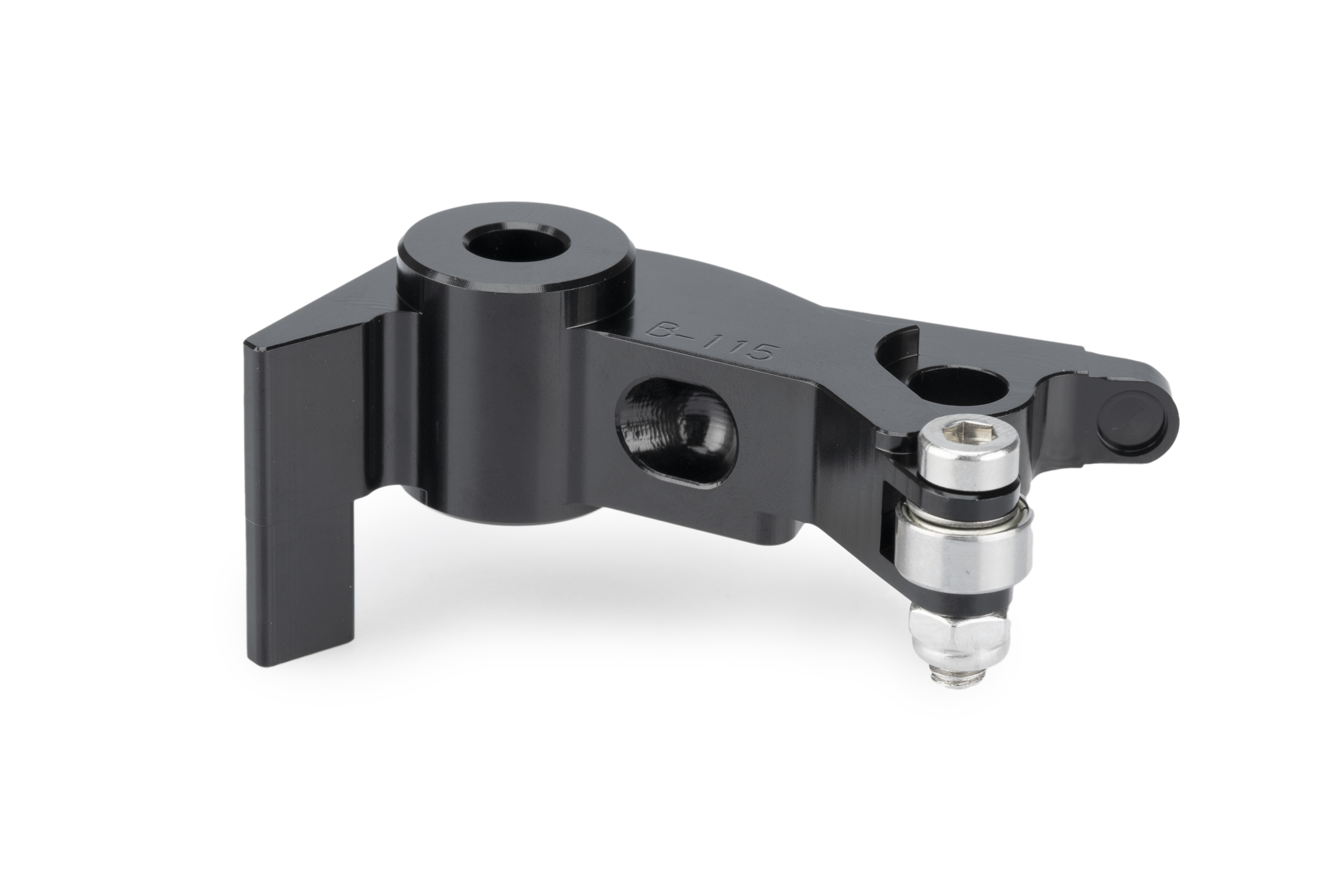 Posteriormente, cada pieza es sometida a un proceso de anodizado en color negro, que no solo refuerza la protección frente a la corrosión y al paso del tiempo, sino que también aporta un acabado elegante y discreto que se integra perfectamente con la estética de la motocicleta. Estos herrajes actúan como la transmisión perfecta entre las manetas Puig y los soportes originales de la moto, asegurando un montaje firme, estable y totalmente compatible con el sistema de serie.