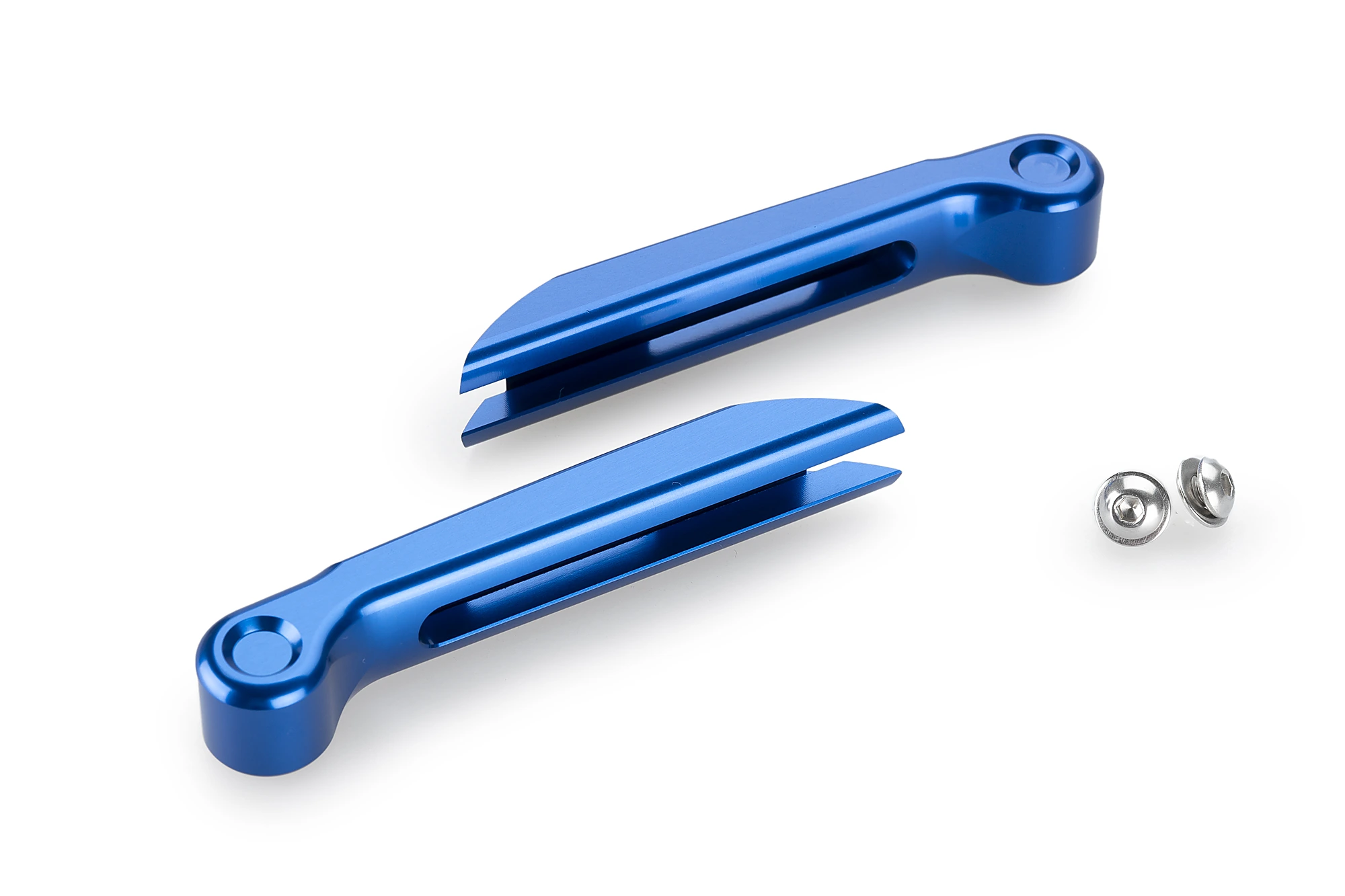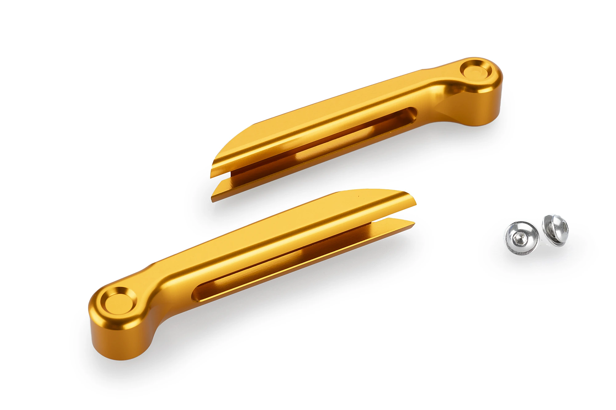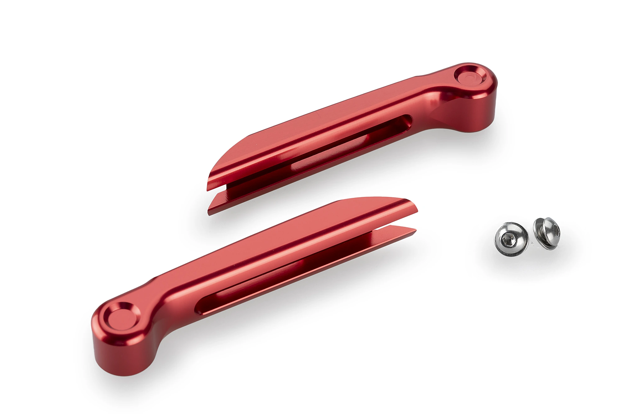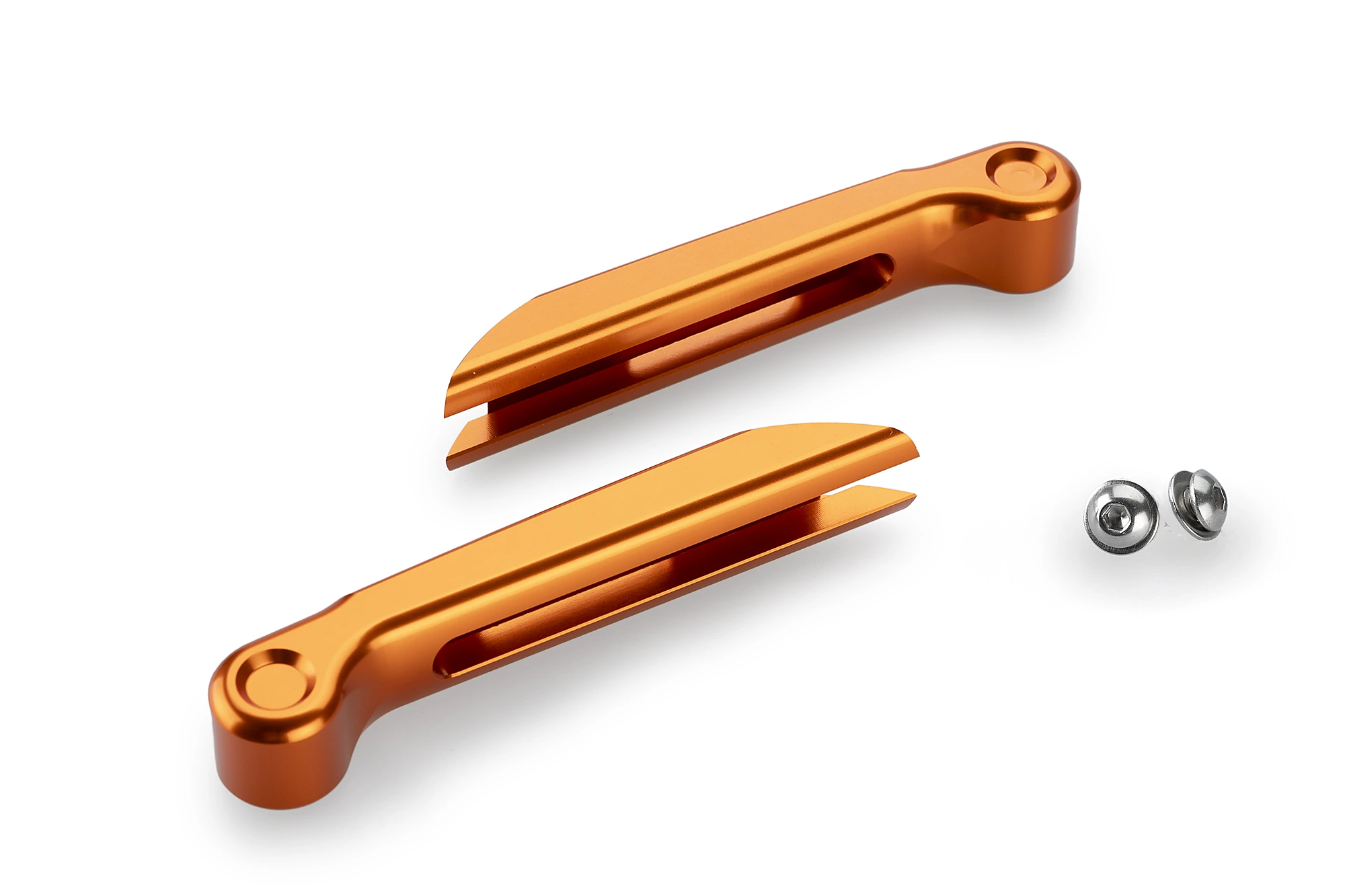 Fabricadas mediante mecanizado a partir de un bloque de aluminio, presentan un acabado anodizado en varios colores, lo que permite un cambio radical en el aspecto de la moto, especialmente en la posición de conducción. Esta actualización no solo mejora la estética, sino también la experiencia de pilotaje.