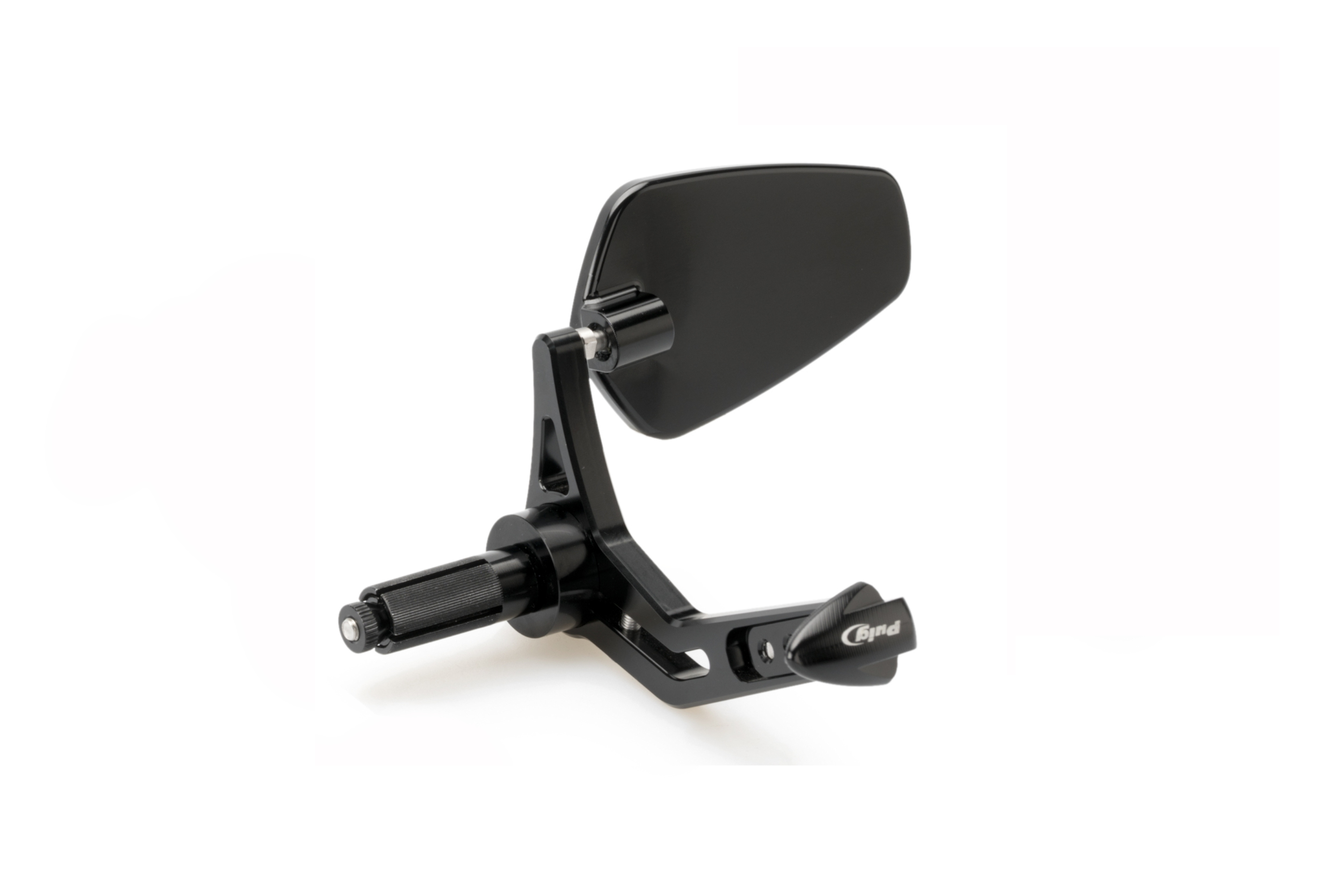 Combina en una elegante y compacta pieza el protector para maneta de freno / embrague con retrovisor anclado al final del manillar.
