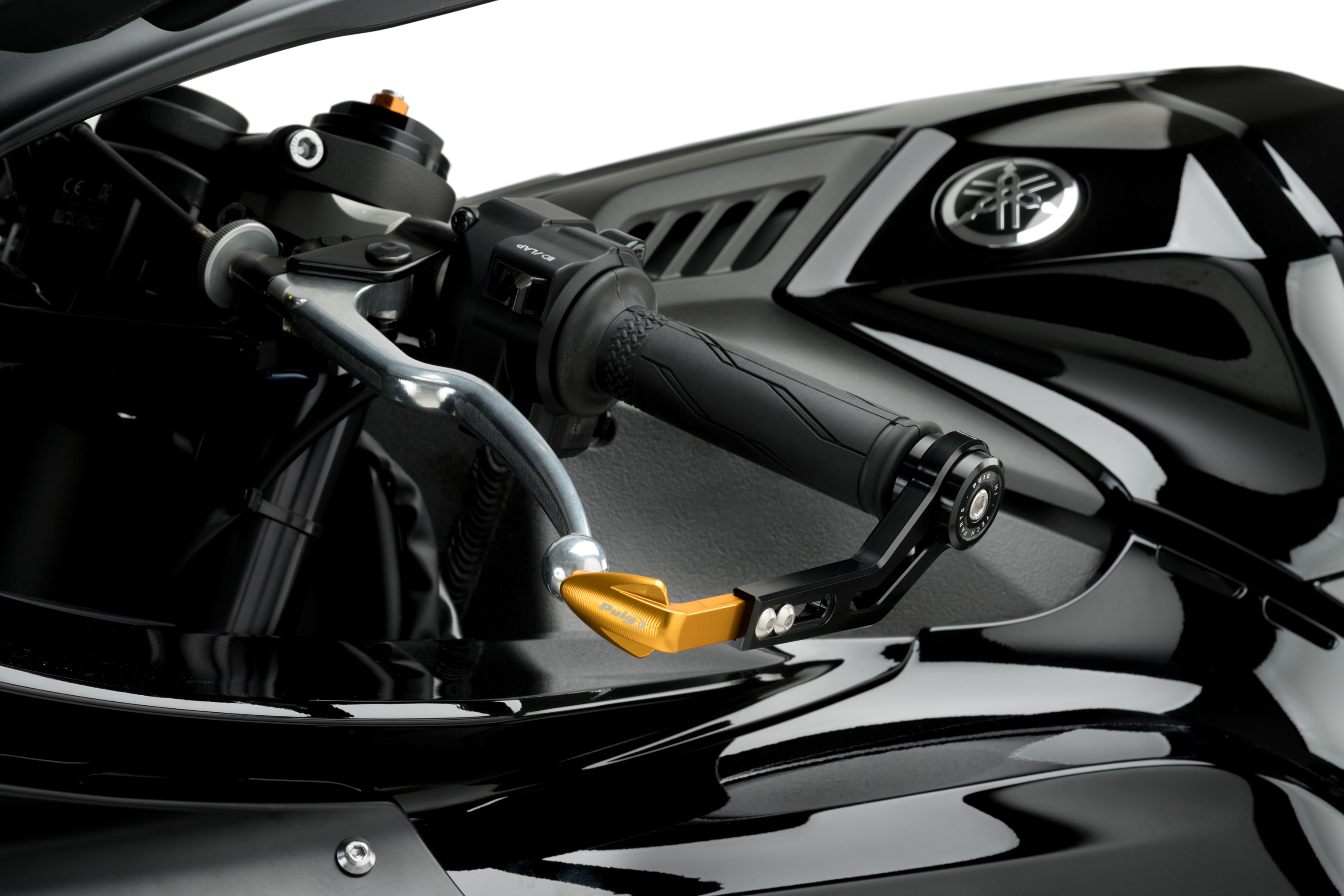 El protector de maneta de embrague deriva de la creación de esa misma pieza para el freno. Un elemento que se ha convertido en imprescindible en las motos de competición. Con esta pieza, homologada para calle, Puig Hi-Tech Parts extrae sus conocimientos como colaborador de los equipos punteros de las categorías reinas. Gracias a esa experiencia hemos ideado un elemento que prioriza la protección y la integración de esta pieza en el conjunto de la moto original. Por ese motivo, se ha desarrollado un sistema de ajuste bidireccional (longitudinal y perpendicular) del protector respecto al puño.