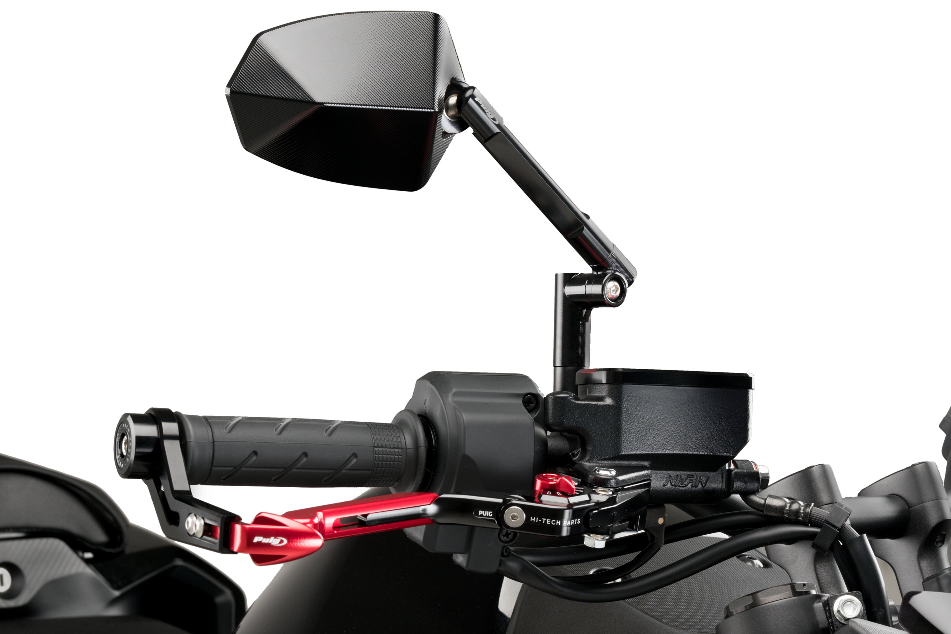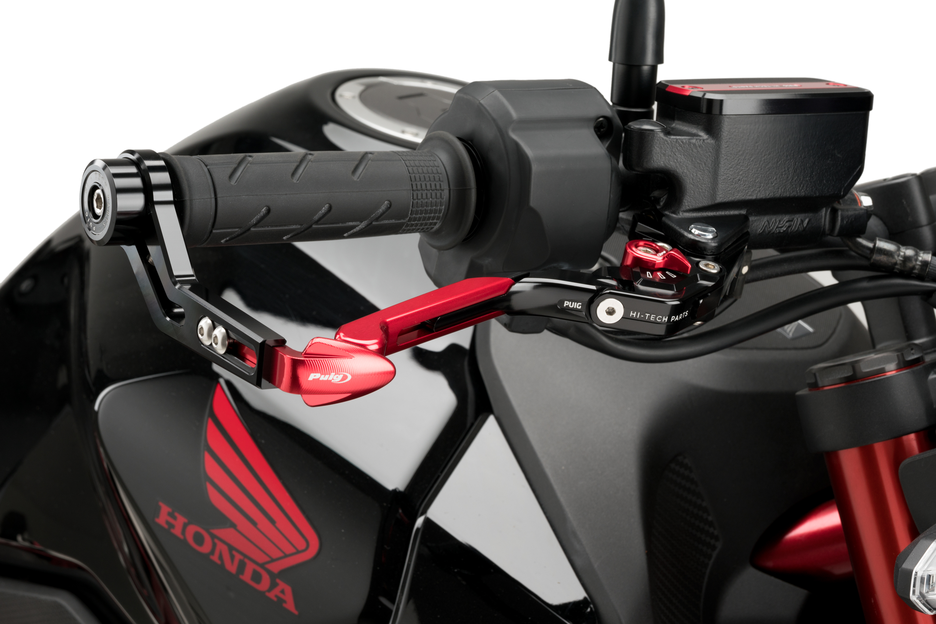 En el diseño Puig ha priorizado la protección y la integración del protector en el conjunto. Para ello se ha hecho un sistema de ajuste bidireccional del protector, longitudinal y perpendicular al puño.