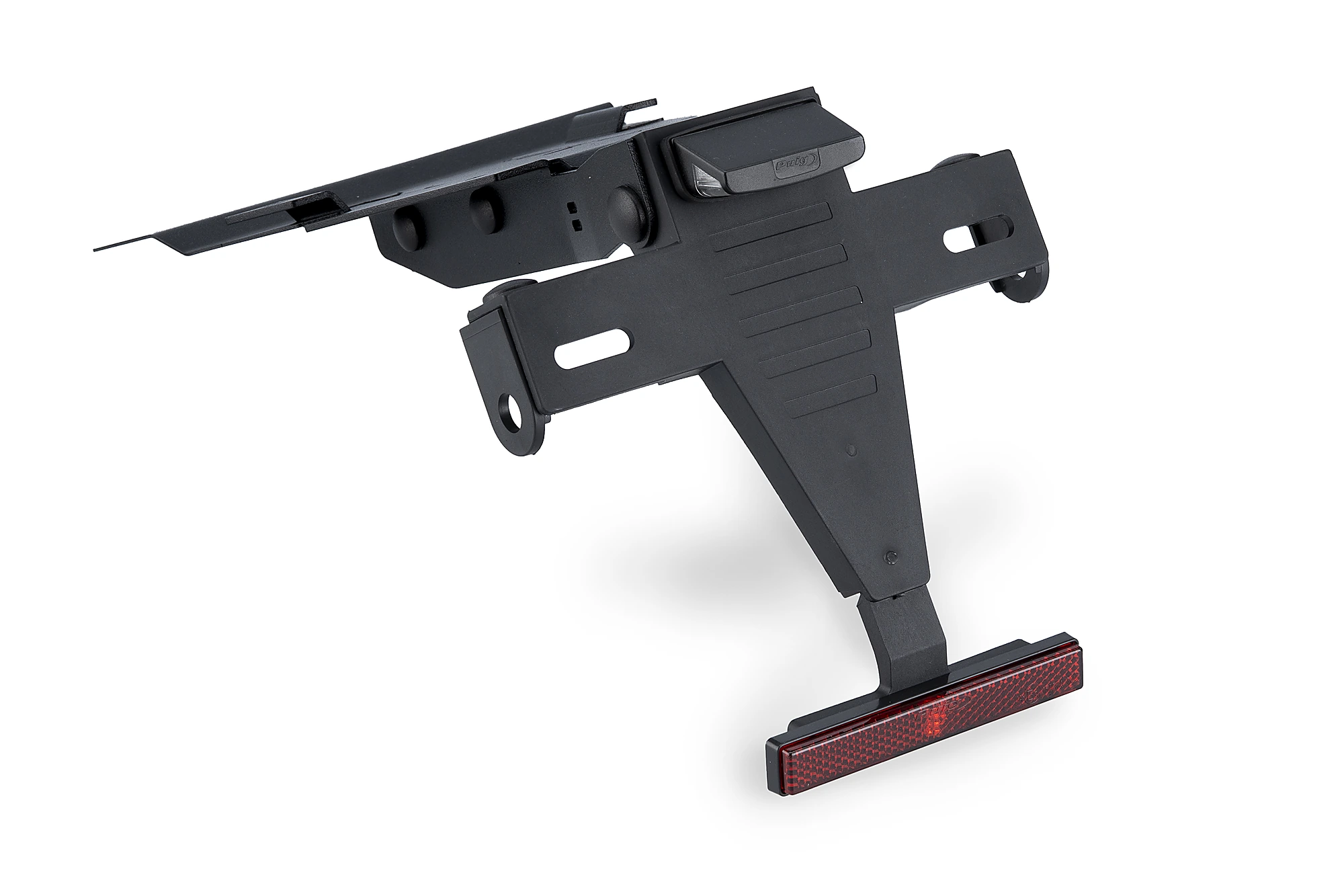 NO COMPATIBLE CON MALETAS LATERALES La referencia del portamatricula no incluye el kit de cableado plug&play del grupo de iluminación. Vea la referencia más abajo en Complementos si está disponible.