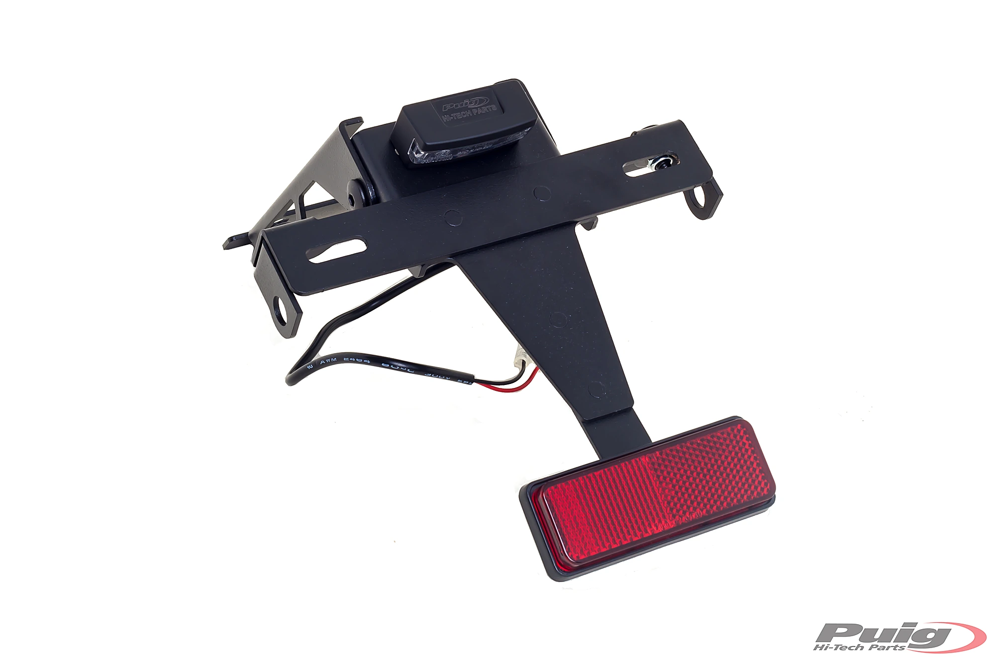 Sustituye el portamatrículas original de tu moto por el soporte portamatrículas de Puig, que, gracias a su ubicación elevada, proporciona un aspecto deportivo a tu motocicleta. El conjunto combina piezas de acero con acabado en pintura epoxi y elementos de poliamida, logrando una notable reducción de peso en comparación con el soporte original.