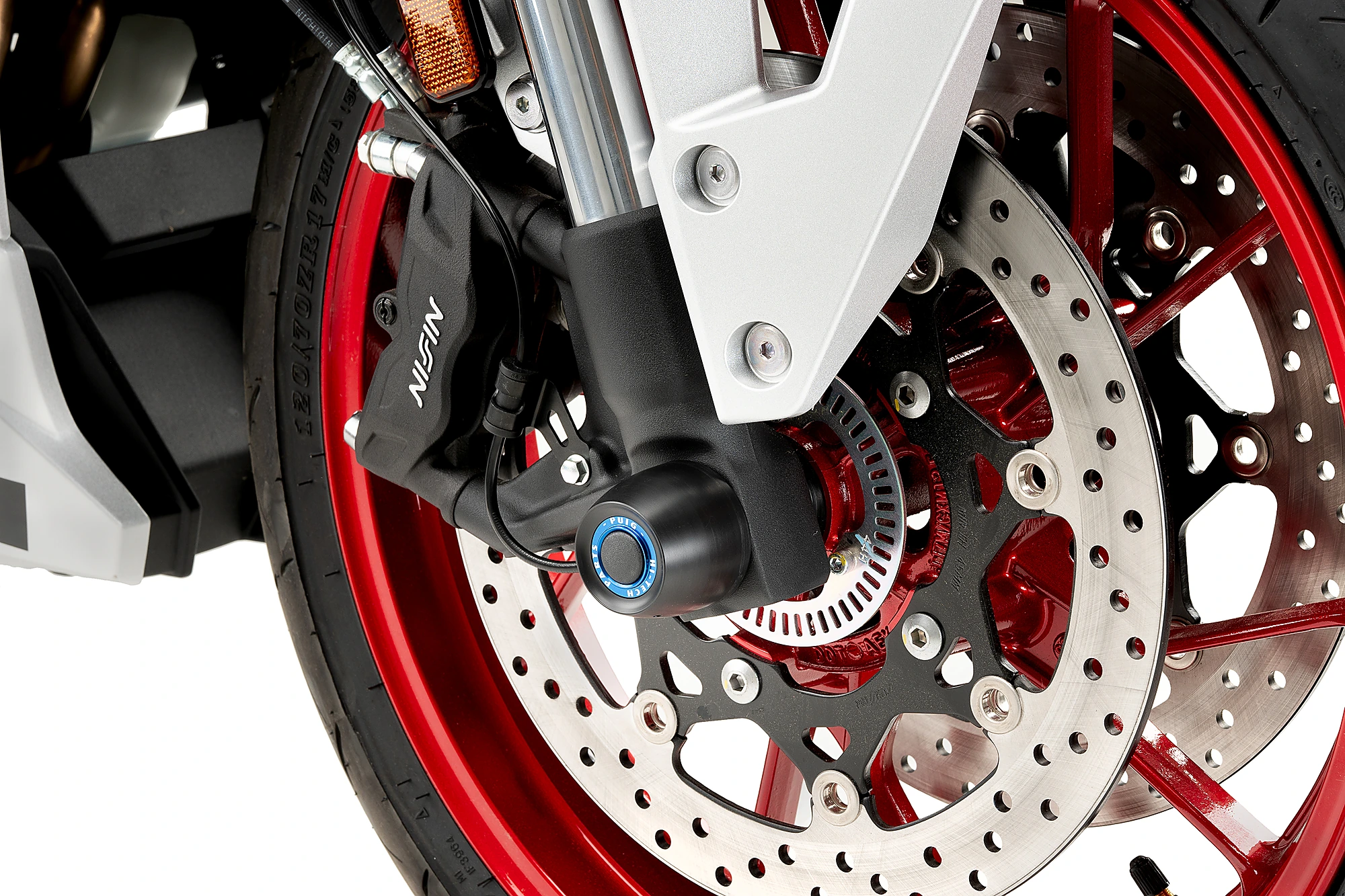 Su look de competición dotará a tu moto del carácter Racing que tanto aprecias y, además del protector de horquilla en color negro, Puig da la posibilidad de adquirir aros anodizados con diferentes colores para poder cambiar el color de la pieza a conveniencia del piloto, estos aros se venden a parte del protector.