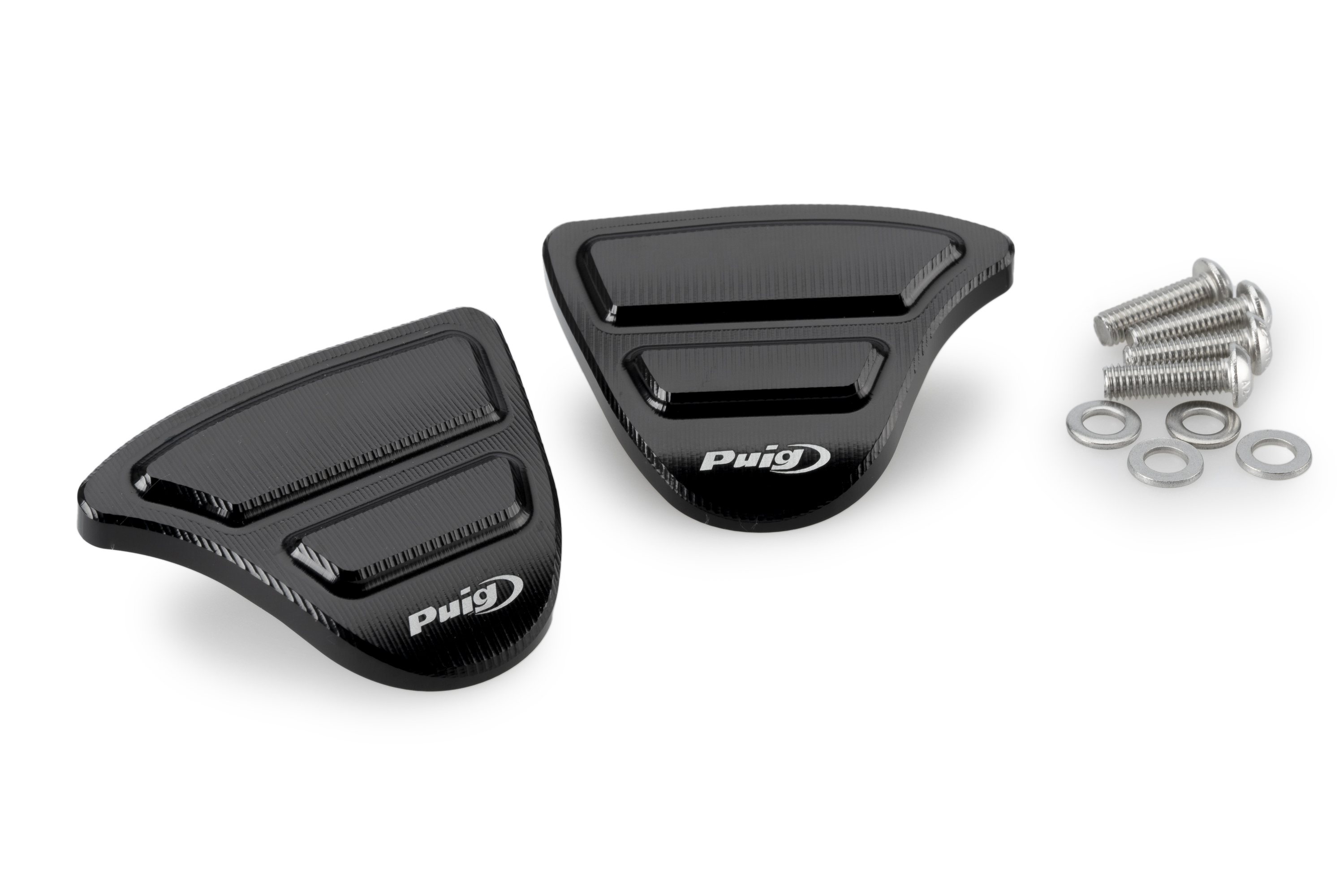Las piezas están fabricadas a partir de un bloque de aluminio con el posterior anodizado en color negro, un tono que combina con cualquier modelo deportivo. Su diseño está especialmente ideado para no destacar sobre el carenado, manteniendo su forma y funcionalidad estructural.