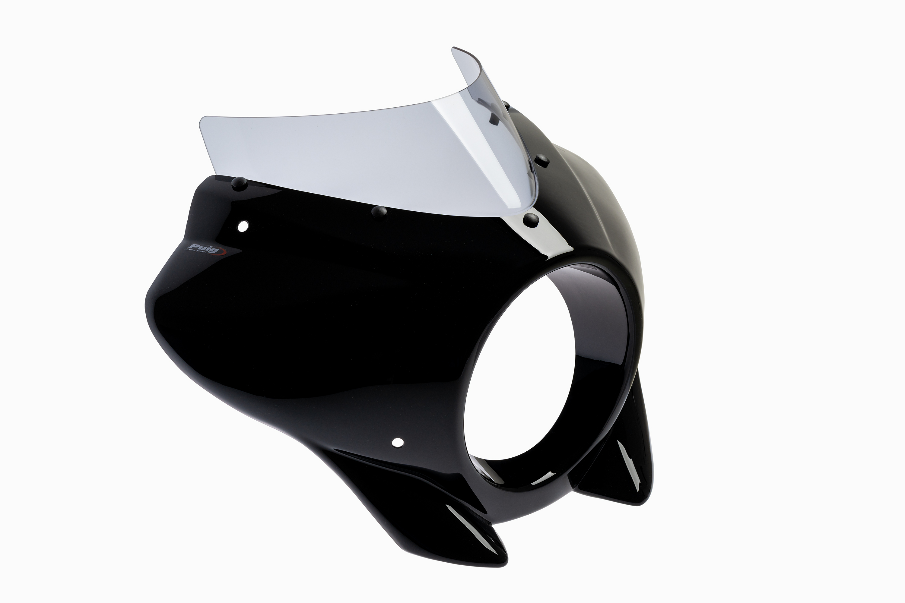 El semicarenado Mirage es un accesorio muy universal ya que su diseño se adapta fácilmente a motos con faro redondo cubriendo la parte frontal del alrededor del faro protegiéndolo de la suciedad y de pequeños impactos.