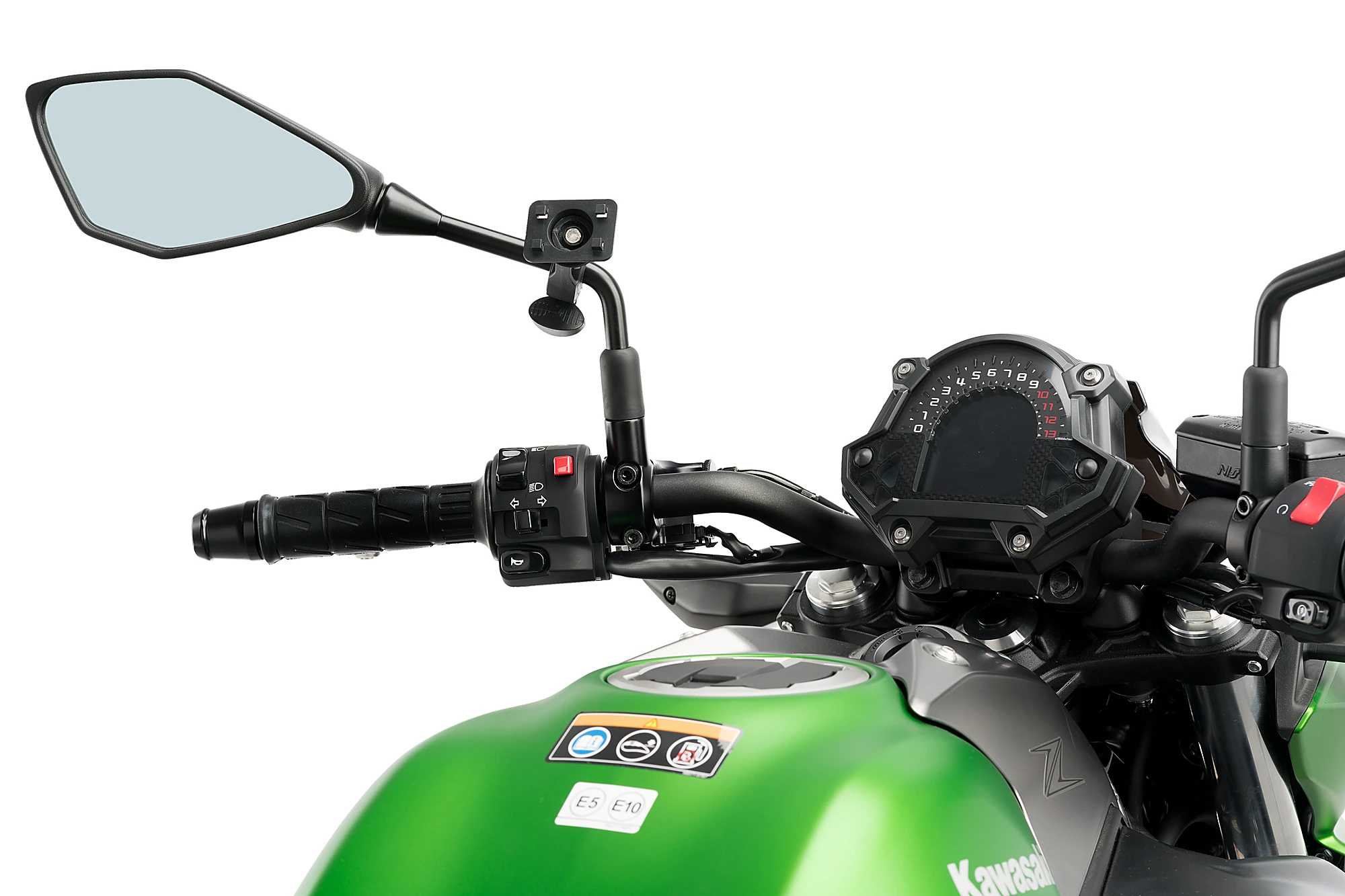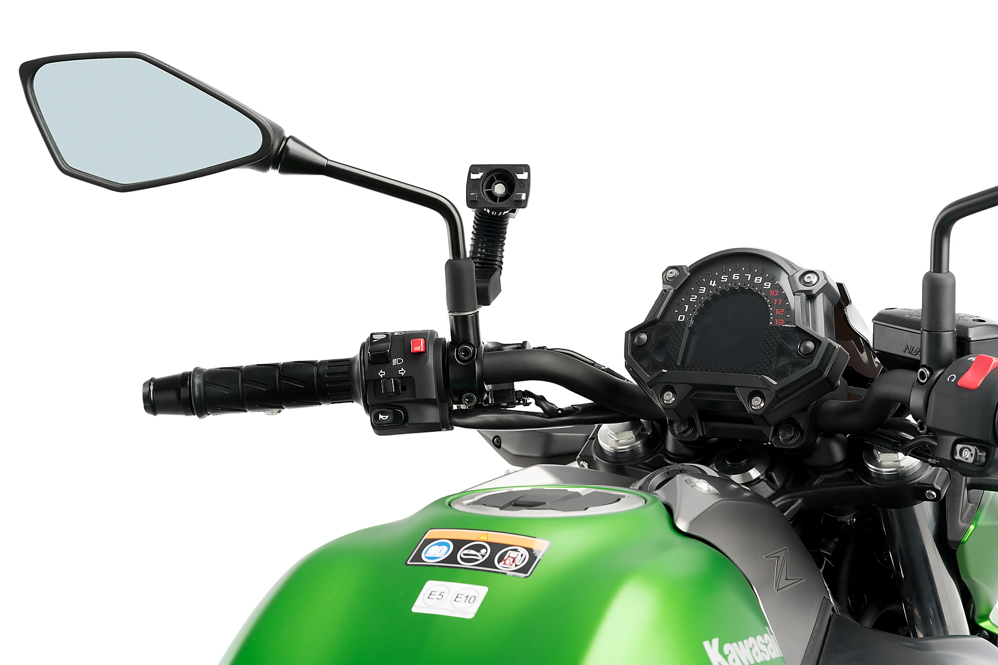 Puedes montar el portateléfono en la base del retrovisor, la varilla del retrovisor, en el manillar y en la tija de la moto donde quedará más inmovilizado frente a posibles impactos o baches de la carretera.