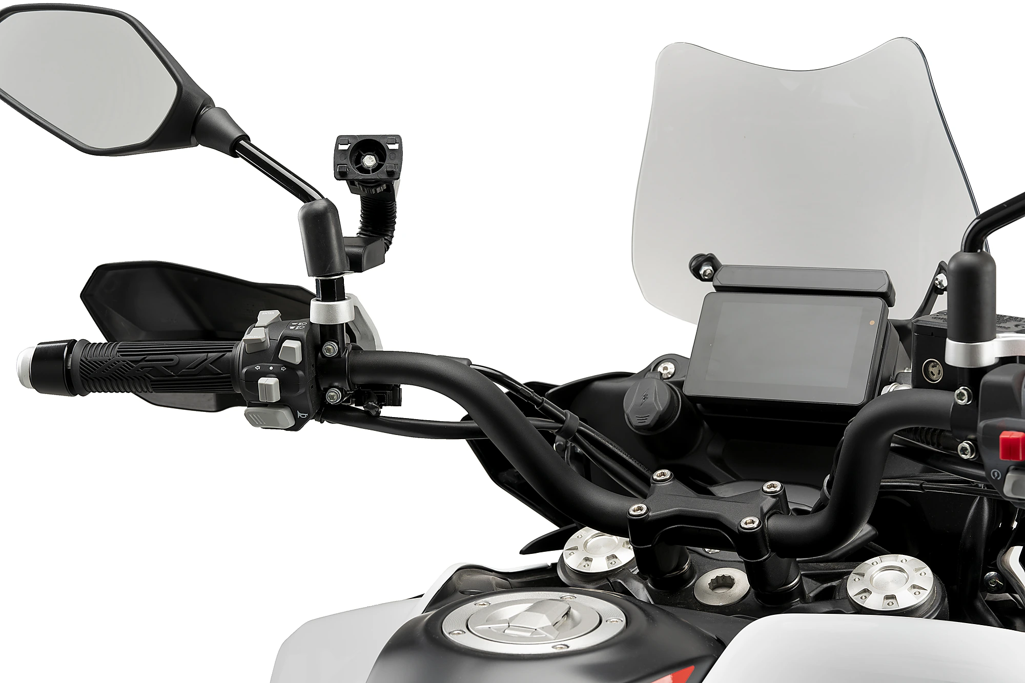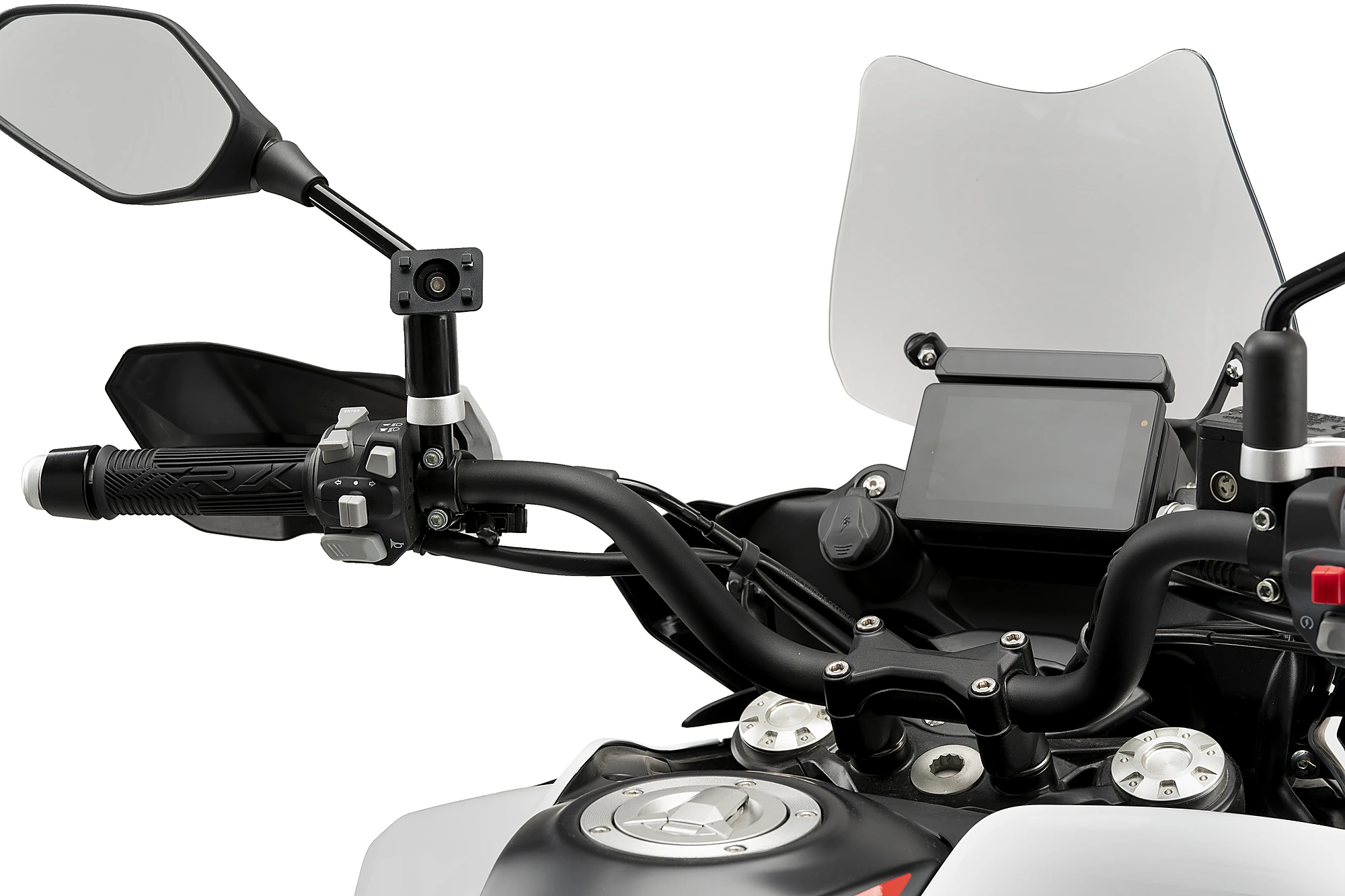 Puedes montar el portateléfono en la base del retrovisor, la varilla del retrovisor, en el manillar y en la tija de la moto donde quedará más inmovilizado frente a posibles impactos o baches de la carretera.
