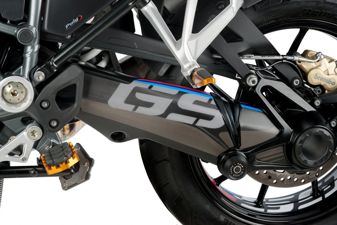 Para la R1300GS, este protector está disponible en colores específicos que se integran perfectamente con el diseño de la moto, garantizando una apariencia personalizada y profesional. Por otro lado, la versión universal está acabada en un atractivo estilo similar al carbono. Ambas opciones proporcionan una protección robusta con un acabado deportivo y moderno.