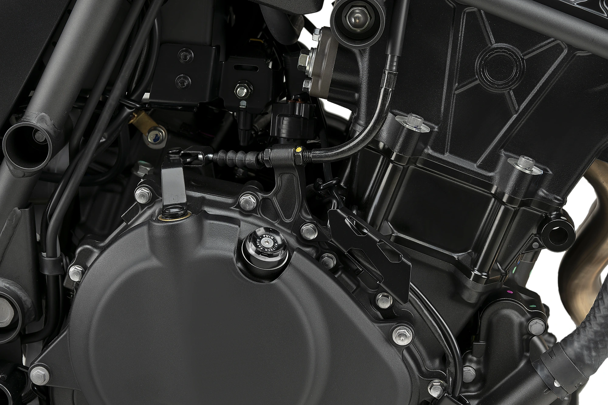 D'une pièce d'origine purement fonctionnelle à une pièce design qui se démarque dans l'assemblage du moteur. Le caractère racing marqué, de par ses dimensions réduites et ses lignes d'usinage, s'associe à l'élégance d'un ensemble anodisé noir et d'une bague colorée qui lui permet de se fondre dans le reste de la moto.