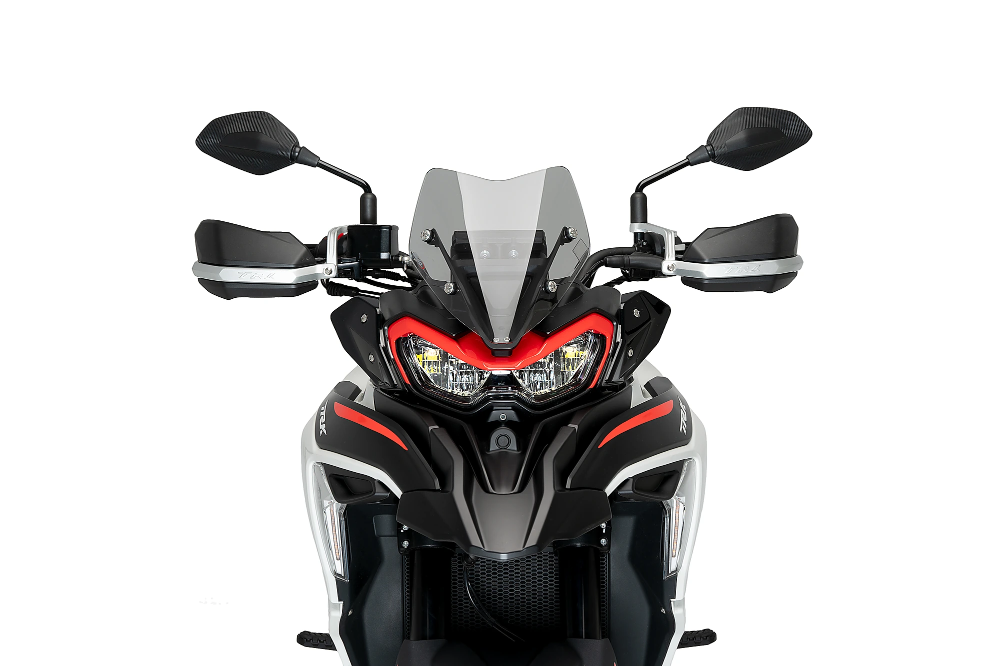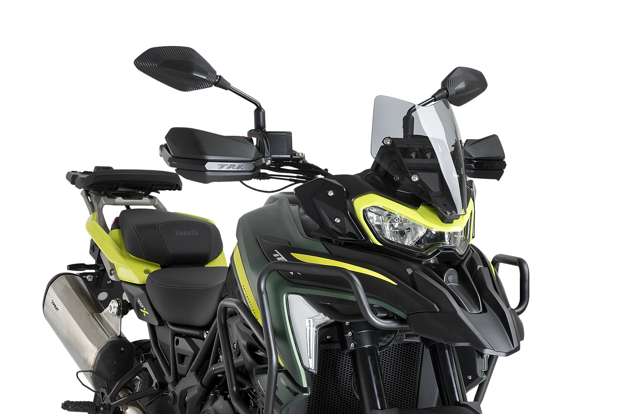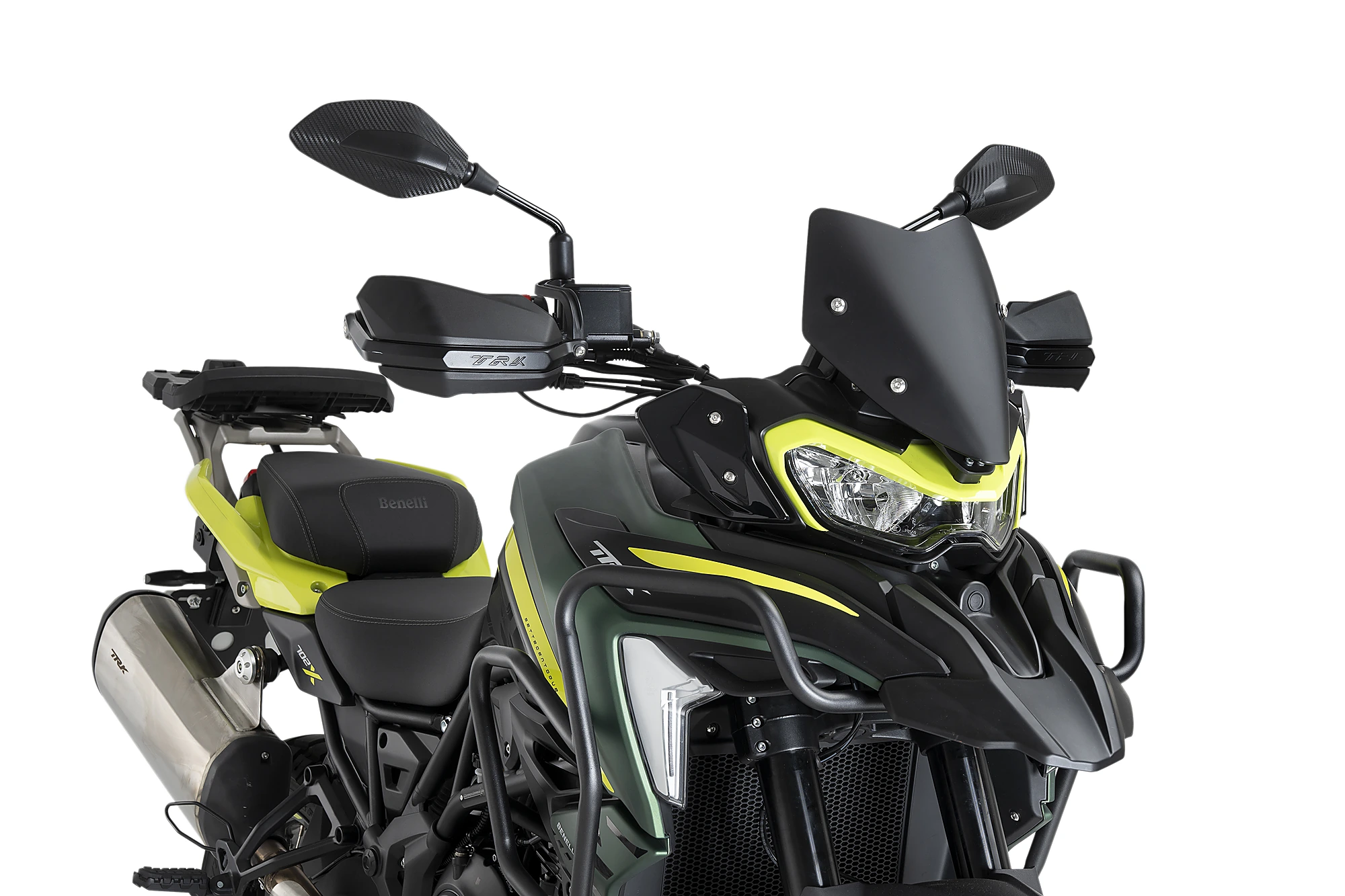 La bulle Sport pour Benelli TRK 702/702X'23 arbore un design minimaliste et agressif, en ligne avec l'esthétique du trail italien, avec deux bords diagonaux marqués qui se combinent avec les formes caractéristiques du phare du Benelli TRK 702/702X. '23.