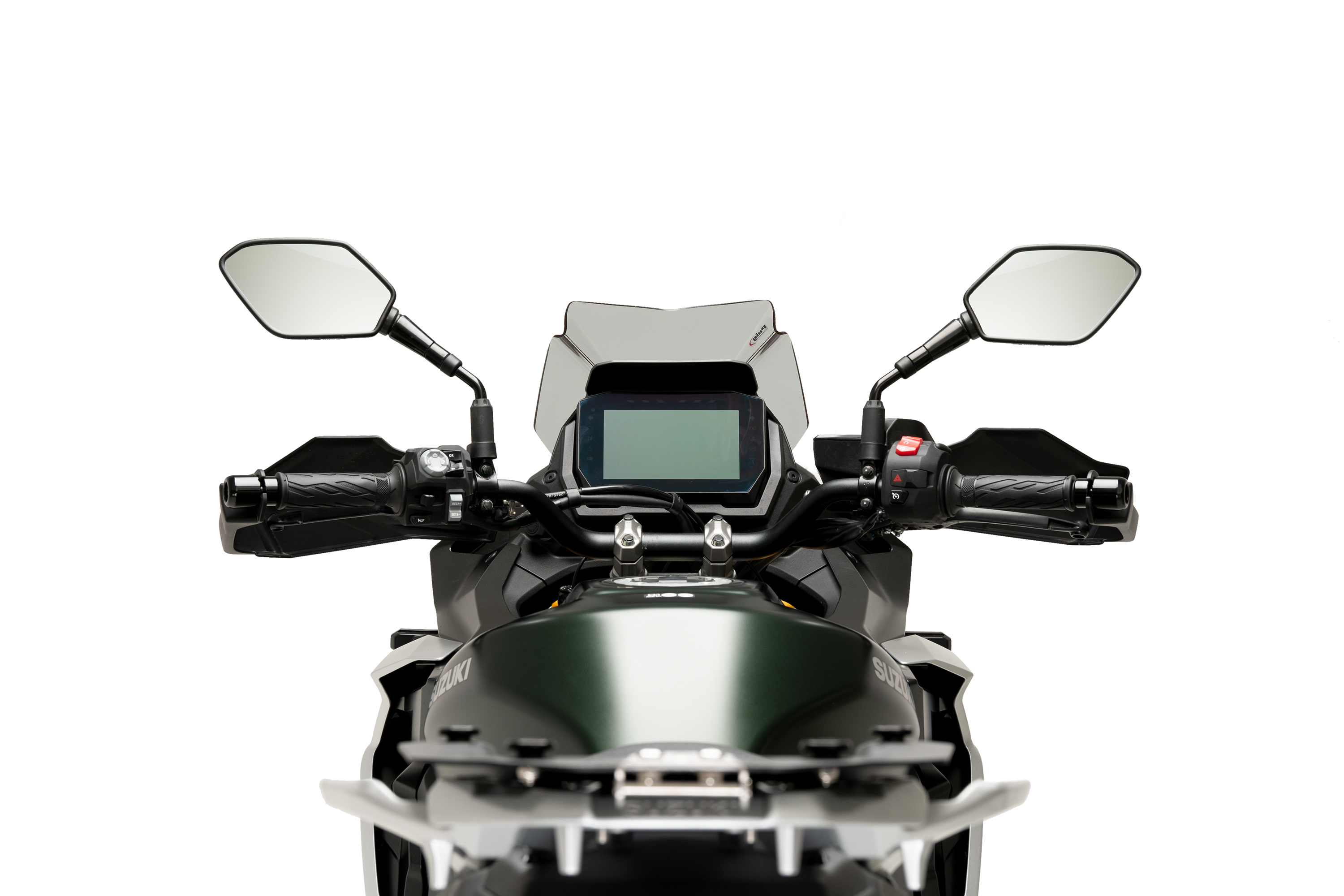 Avec des dimensions totales de 300 mm de large sur 315 mm de haut, la bulle Sport de Puig est 100 mm plus basse que l'écran d'origine Suzuki, offrant ainsi une meilleure visibilité.