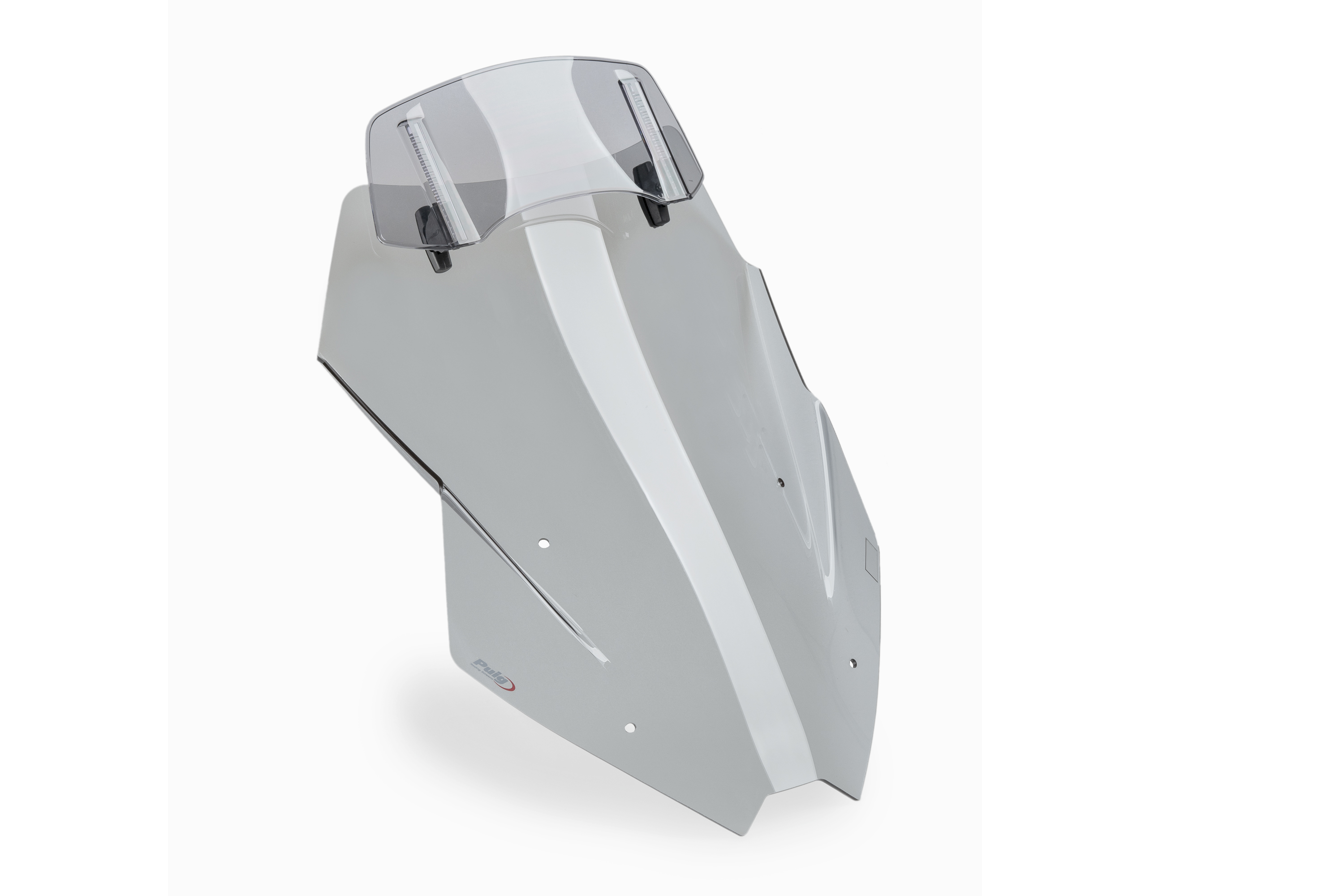 Renouvelez la bulle  de votre moto avec la bulle Touring de Puig. Fabriquée en acrylique de 3-4 mm selon les modèles afin de garantir une résistance maximale à l'impact du vent, améliorant l'aérodynamisme de la pièce et les éventuels impacts lors pendant que vous roulez. De plus, elle est accompagnée d'une visière additionnelle et variable qui redirigera, si possible, la direction du vent pour vous procurer un grand confort au guidon de votre machine. Cette visière est fixée à la bulle Touring au moyen de vis la bulle étant pré percée afin de faciliter son montage.