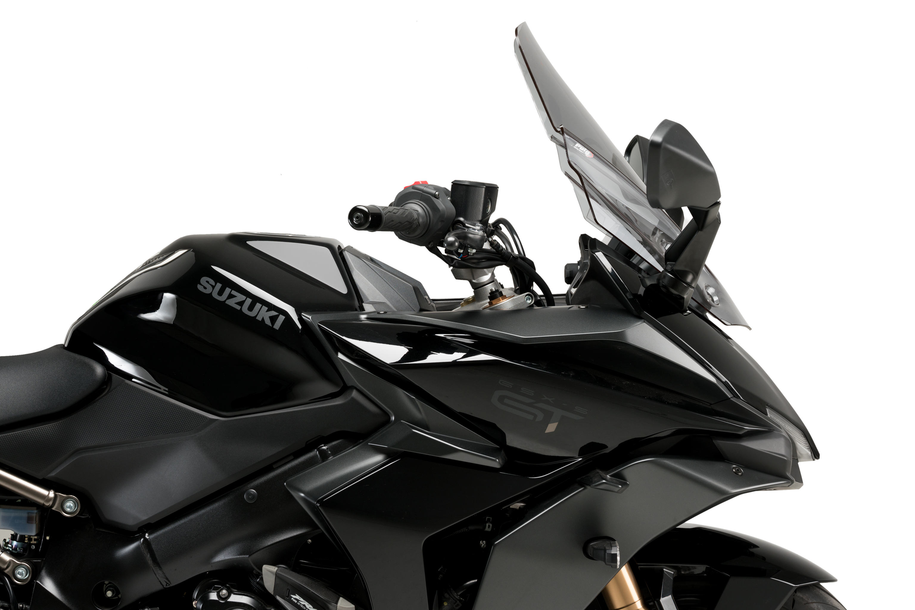 Plus grande que la bulle d'origine, ses lignes agressives et minimalistes s'intègrent parfaitement à l'esthétique de la Suzuki Sport-Turismo.
