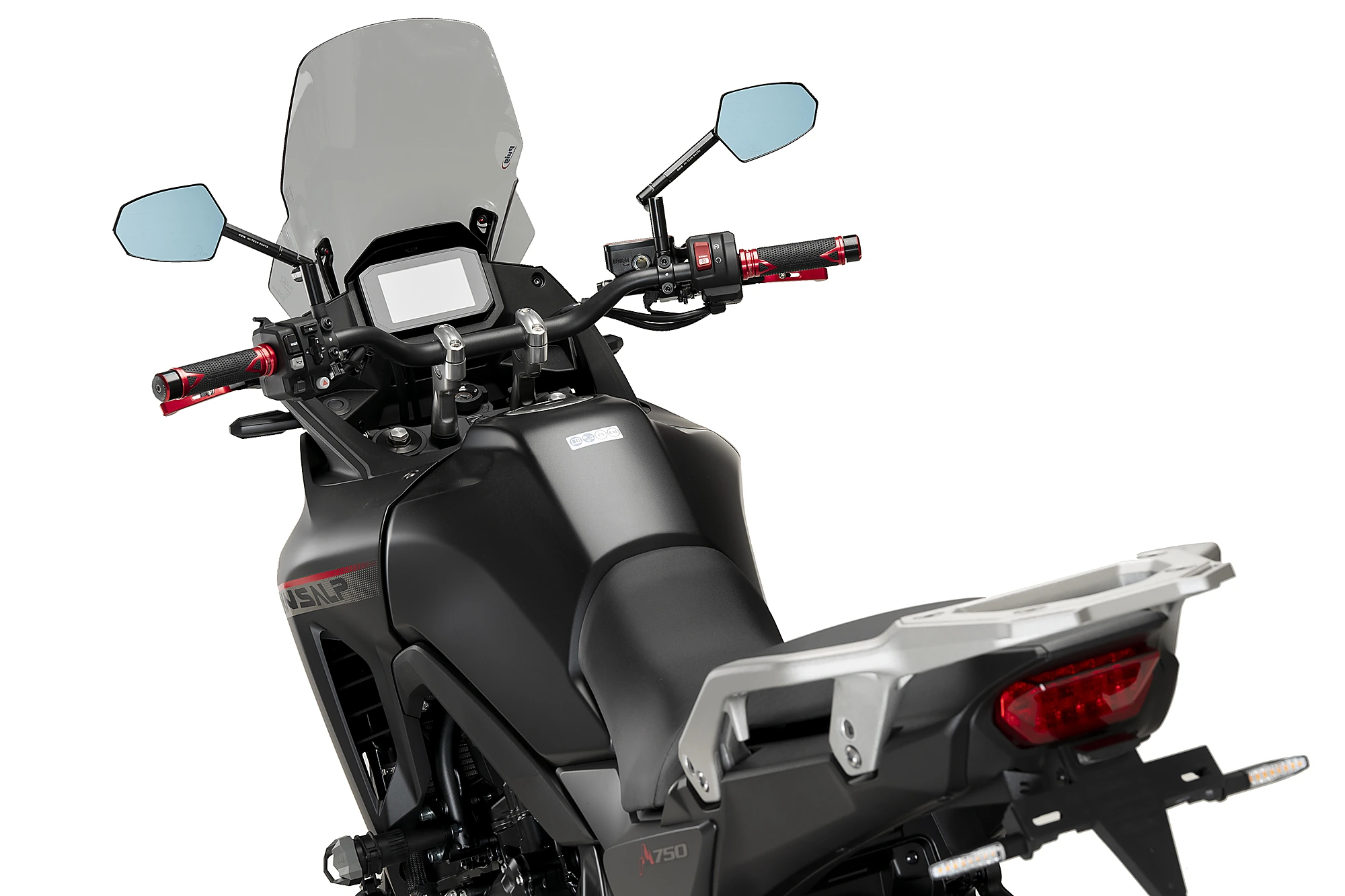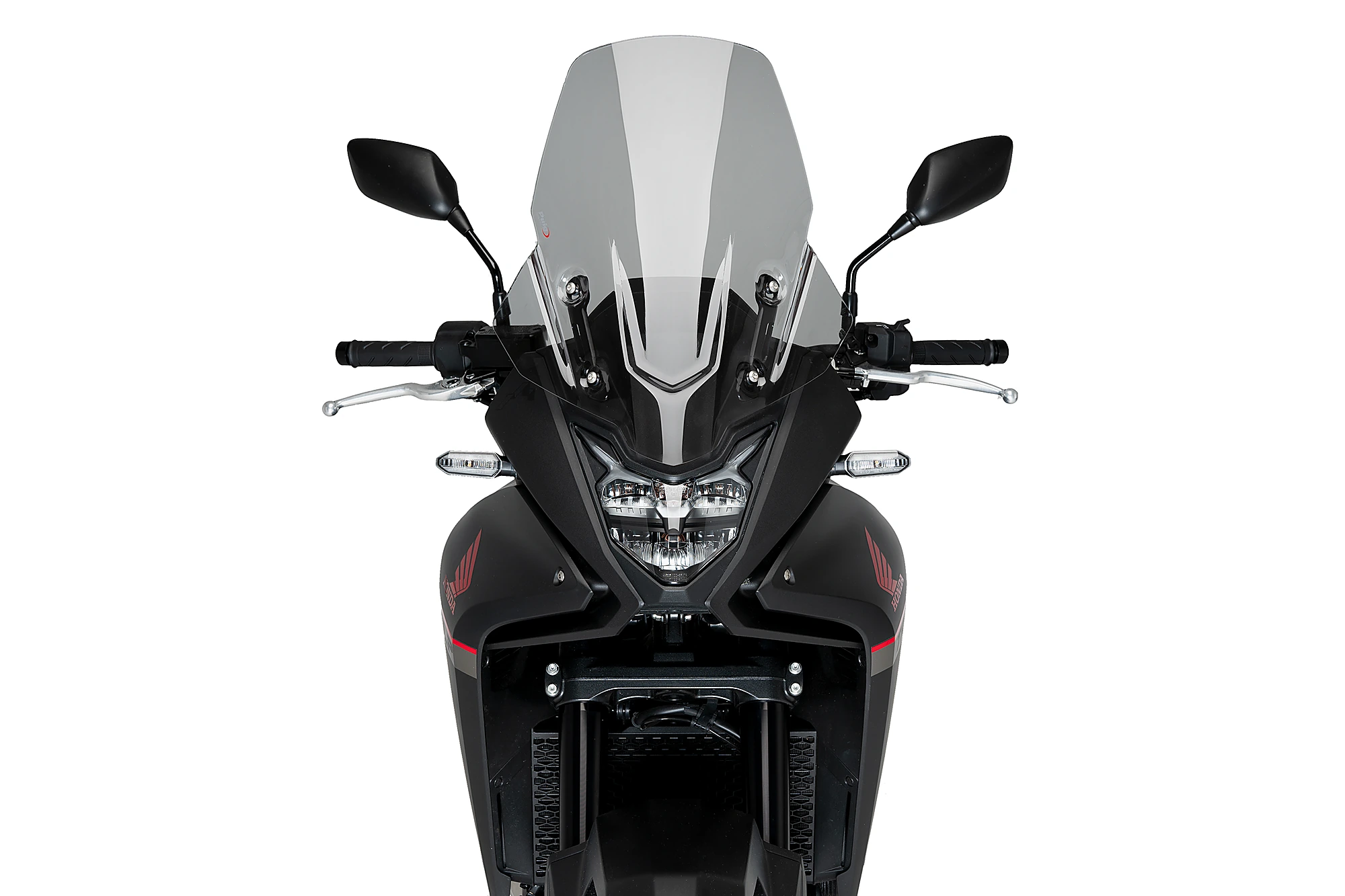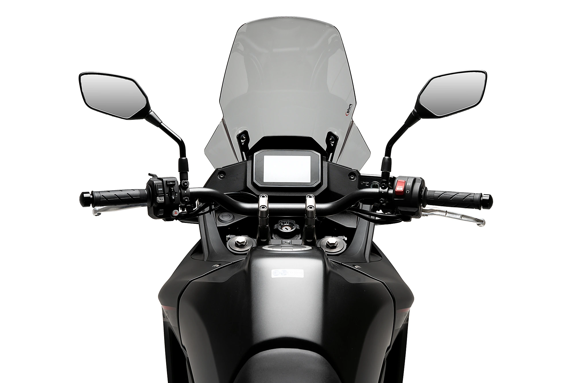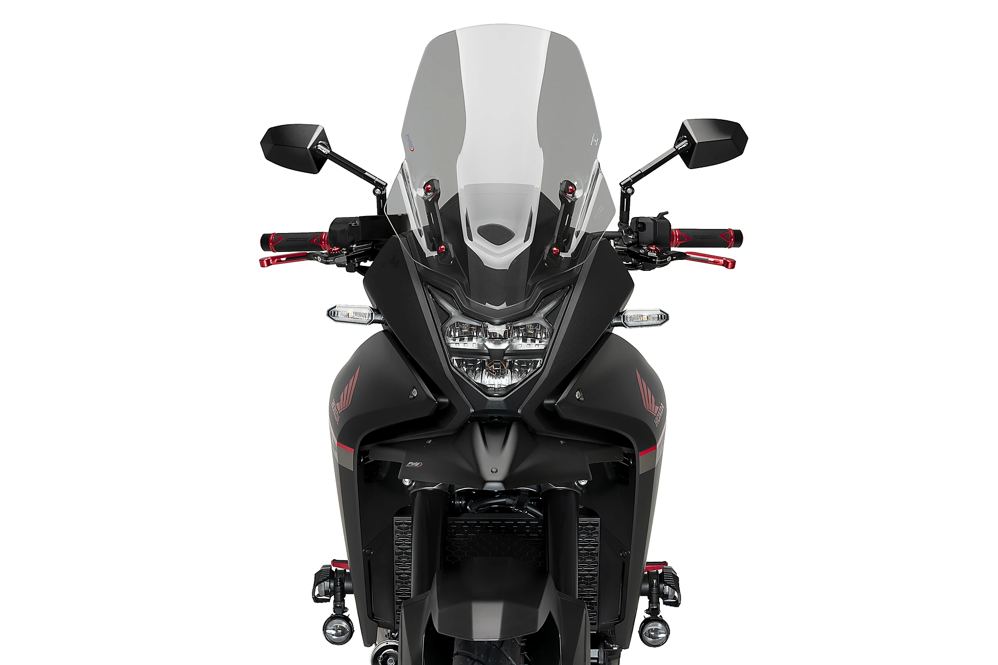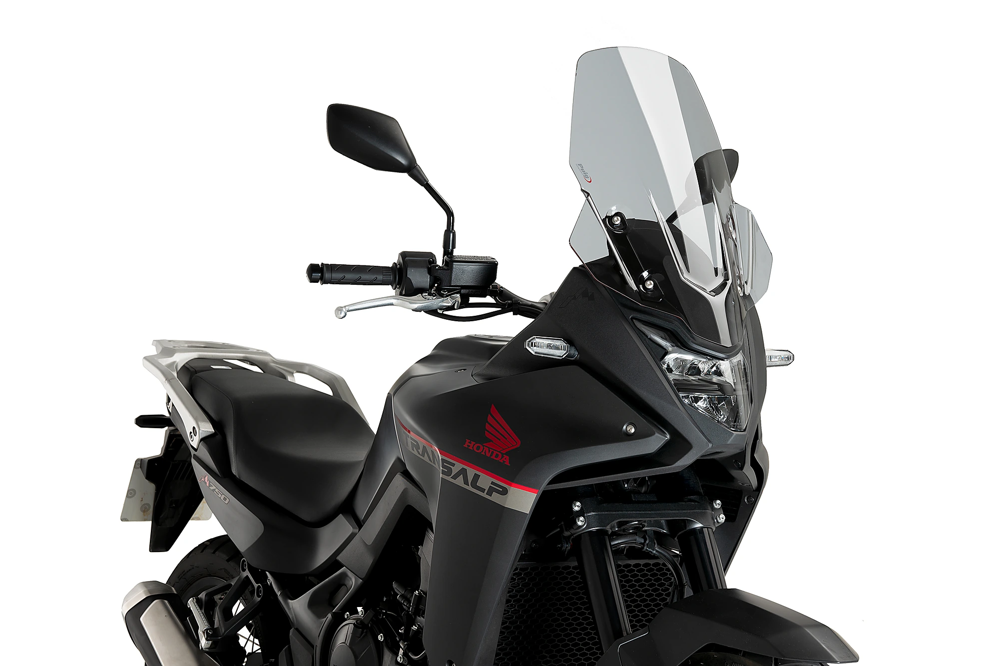 La bulle Puig Touring, conçue spécifiquement pour la Honda XL 750 Translp 23', a été développée pour satisfaire les pilotes recherchant plus de protection aérodynamique grâce à ses formes étudiées en soufflerie virtuelle sans renoncer à un côté sportif, élégant et fonctionnel.