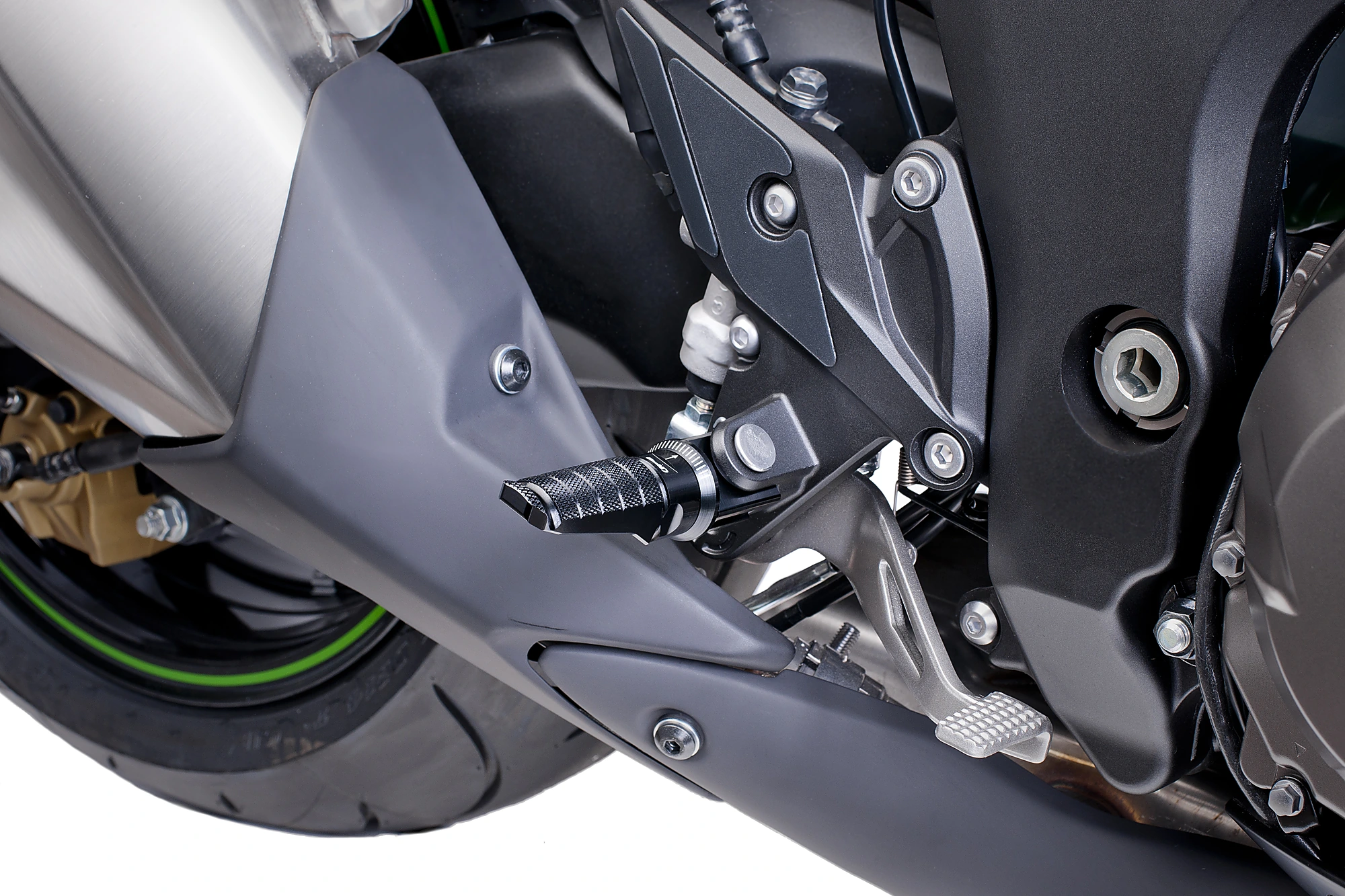 Ils sont distribués en bleu, noir, or, argent, rouge, orange et vert, de sorte que chaque motard peut trouver le repose-pieds qui correspond le mieux à votre véhicule. Pour l'assemblage, des pièces des repose-pieds d'origine sont utilisées et pour chaque moto, le kit de fixation du conducteur et du passager doit être choisi séparément. Ils ont la certification TÜV et le document ABE.