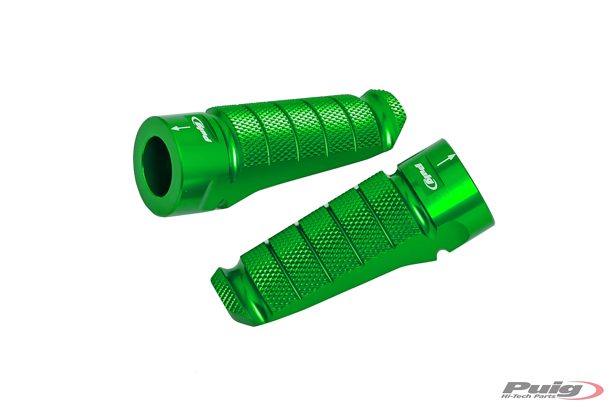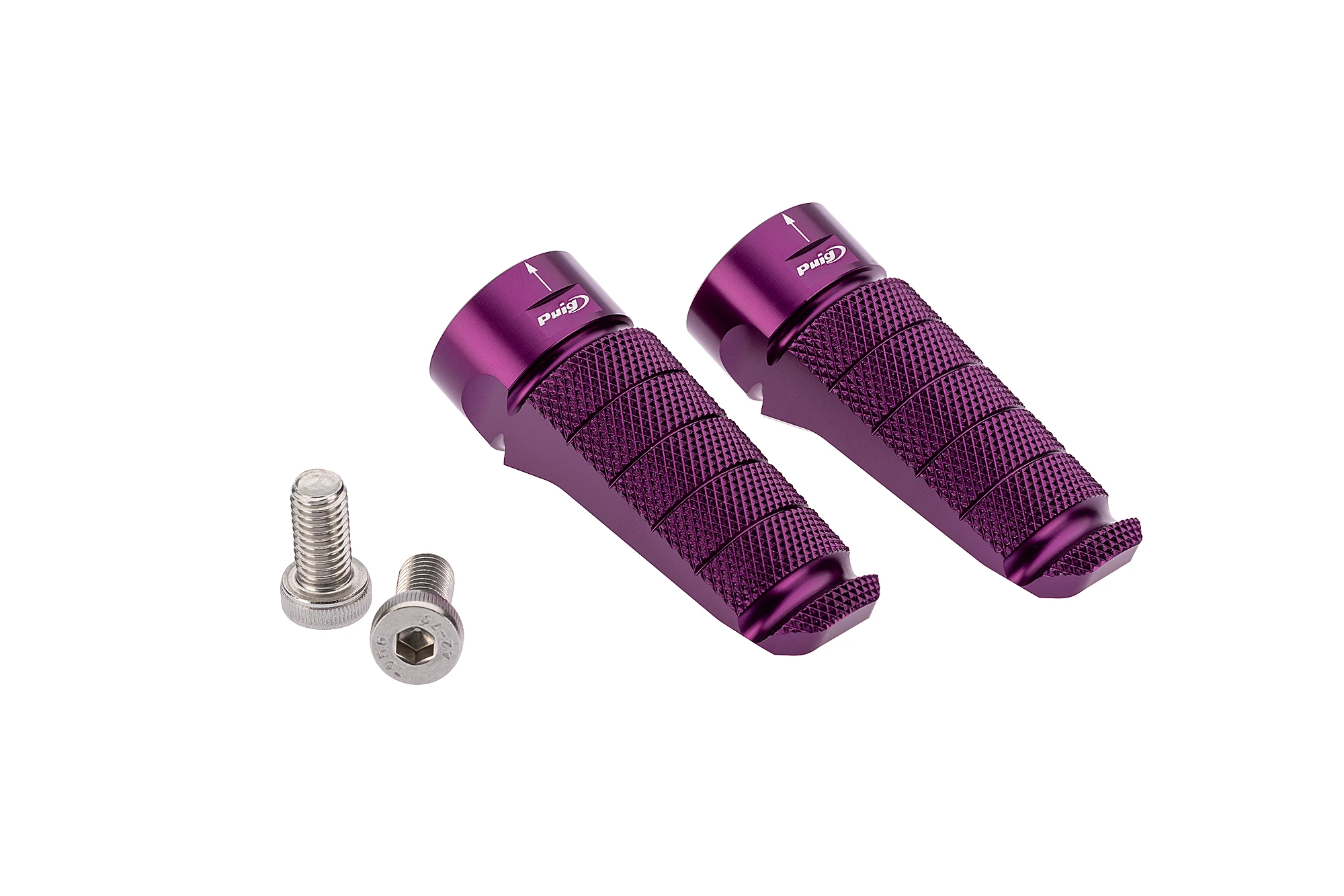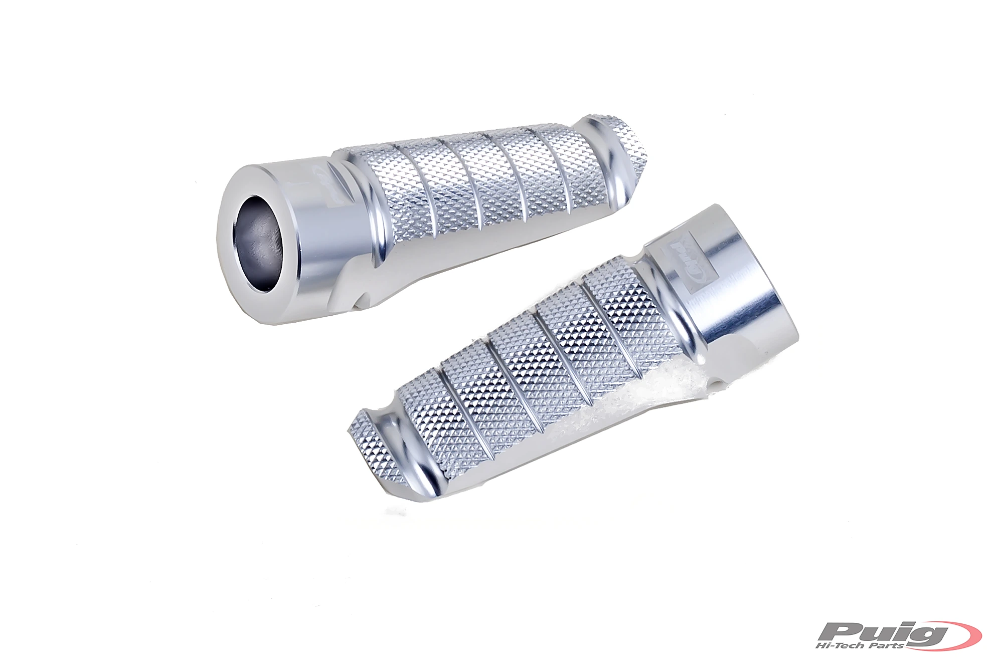 Les repose-pieds racing Puig sont spécialement conçus pour les motos R et offrent une adhérence maximale au conducteur et au passager. Sa conception sportive attrayante en fait le complément idéal pour les motos les plus radicales, dont l'esthétique reçoit une touche encore plus extrême. Ils mesurent 72 mm de long et 27 mm de large et leur poids est seulement de 90 gr. L'ergonomie est un facteur clé dans sa conception, il a été dessiné pour augmenter la hauteur au sol, ce qui augmente l'angle de la moto. Ils sont réglables en inclinaison et ont des marques qui assurent une plus grande précision dans son assemblage. Les