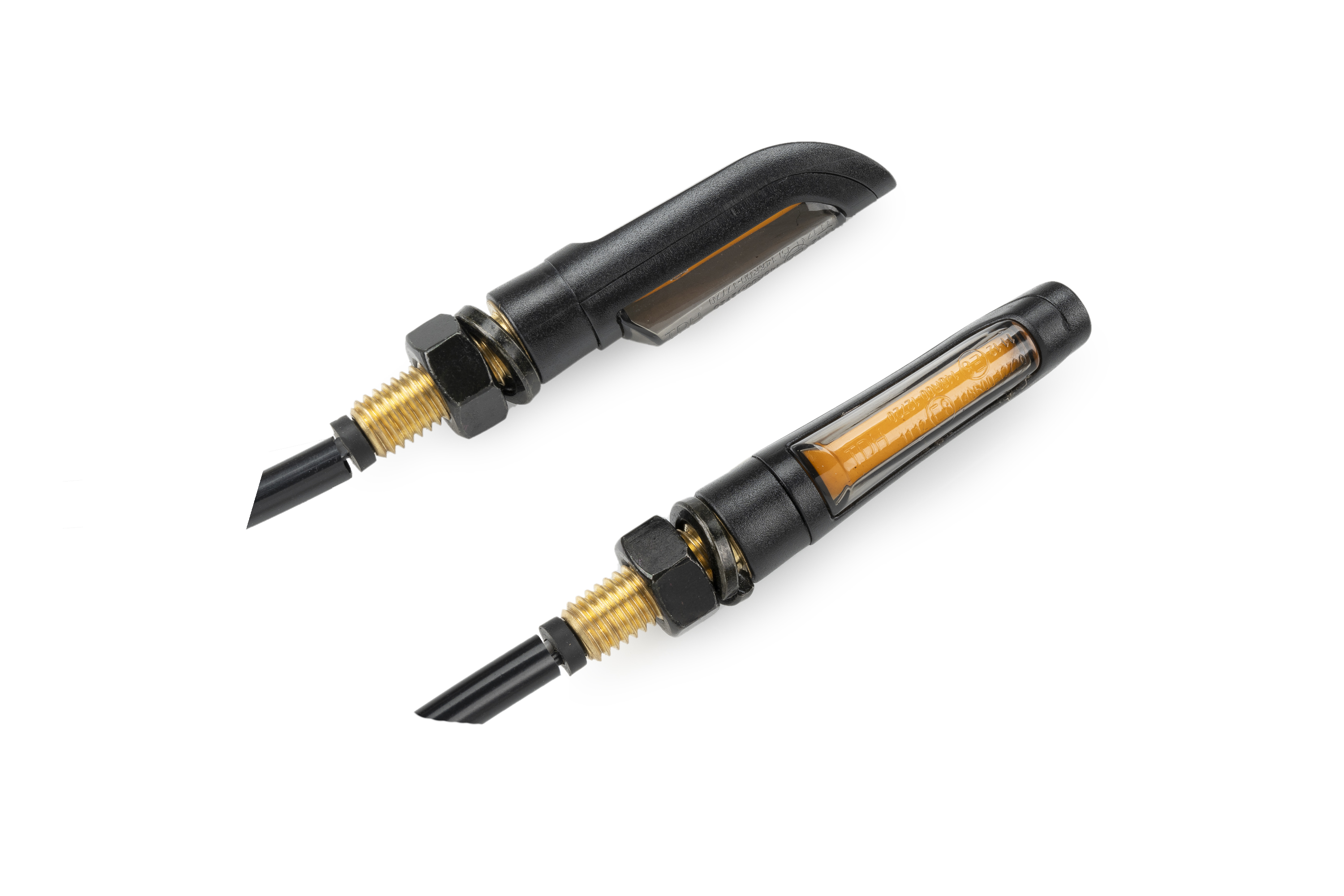 Les clignotants FLOW se distinguent par un design moderne et minimaliste, pensé pour les amateurs de personnalisation stylée. Leur boîtier résistant en plastique noir et leur finition compacte apportent une touche discrète mais élégante qui rehausse l’esthétique de toute moto.