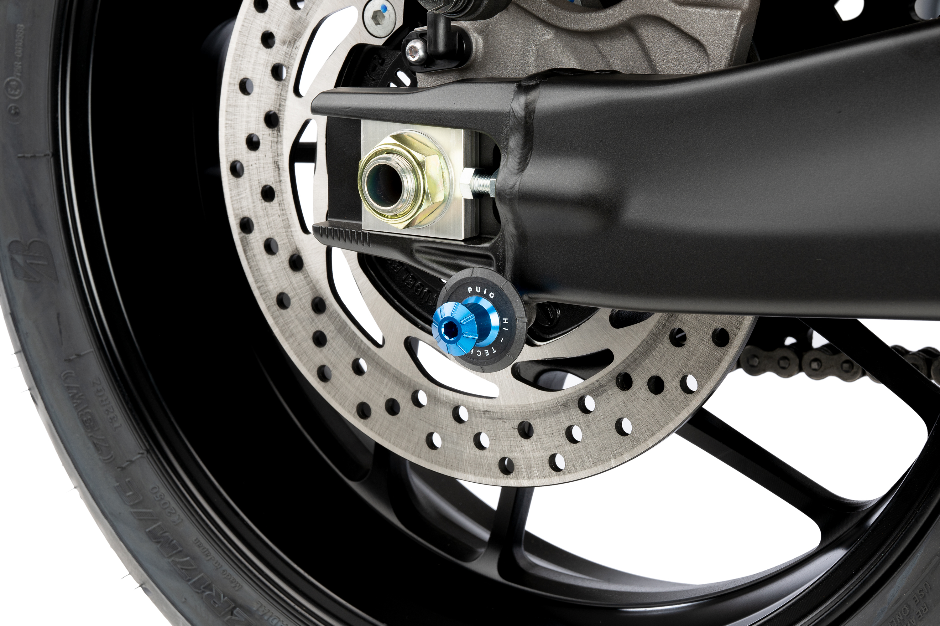 Les diabolos servent de guide à la béquille  pour pouvoir soulever votre moto facilement, rapidement et en toute sécurité. Dans ce cas, nous vous présentons le Diábolo Pro Puig. Fabriqué à partir d’une masse d’aluminium fresée et anodisée (poids réduit à 32 gr), il garantira la protection du bras oscillant contre les éraflures éventuelles car il est accompagné d’une rondelle en nylon noir avec la sérigraphie Puig Hi-Tech Parts.