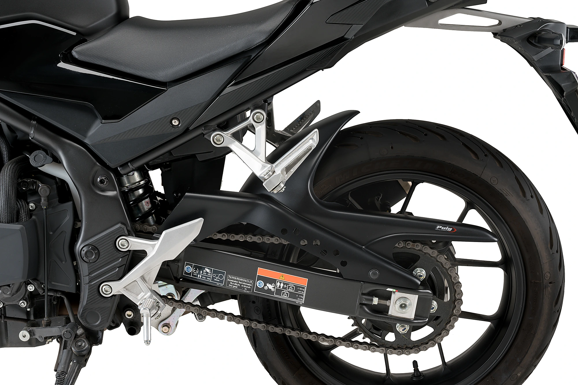 Dans ce cas, Puig donne la possibilité de choisir entre trois modèles différents de garde-boue pour personnaliser la moto à volonté. Garde-boue « S », idéal pour les modèles naked; Type de garde-boue arrière « R », et « S avec support aluminium » au design frappant avec des supports fixés  au bras oscillant de la moto, en particulier pour les modèles type Crosstourer.