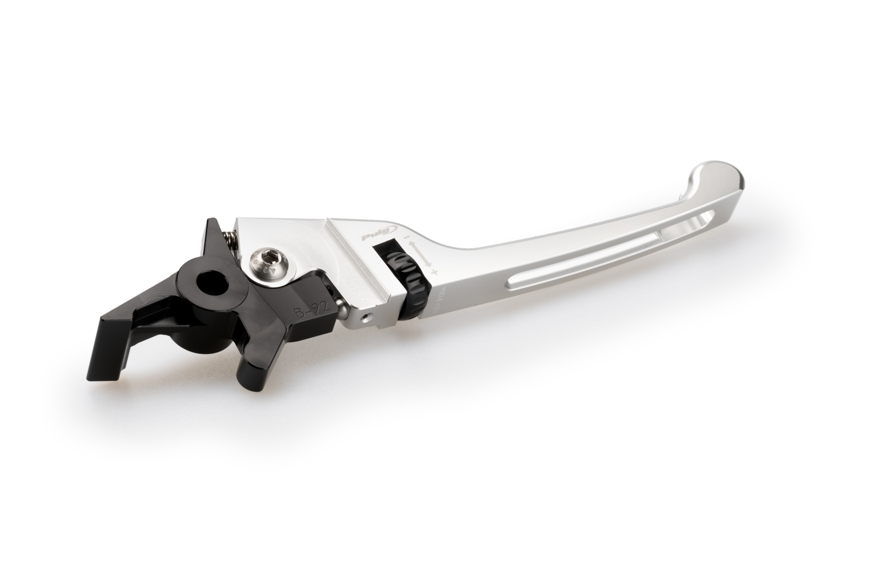 Mais le look n'est pas tout, il y a aussi le confort et la sécurité. Pour cette raison, les ingénieurs Puig ont mis au point un système de réglage simple et facile à utiliser. Grâce à la roue, située dans la zone d'ancrage, vous pouvez adapter la distance entre la poignée et le poing, une solution clé pour les utilisateurs aux mains plus petites. Le réglage  permet de passer d'une distance inférieure à une plus grande par rapport à la poignée d'origine.