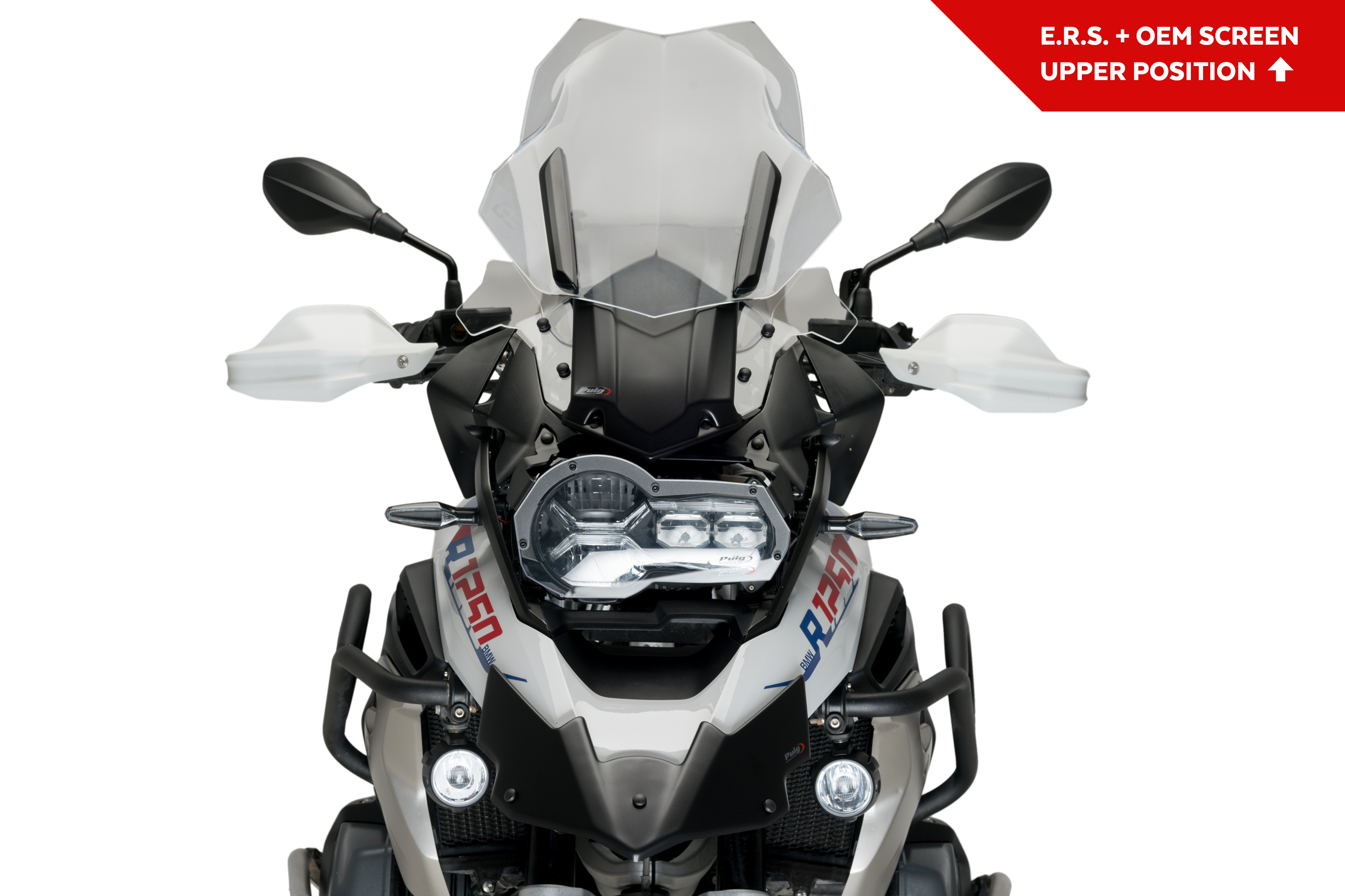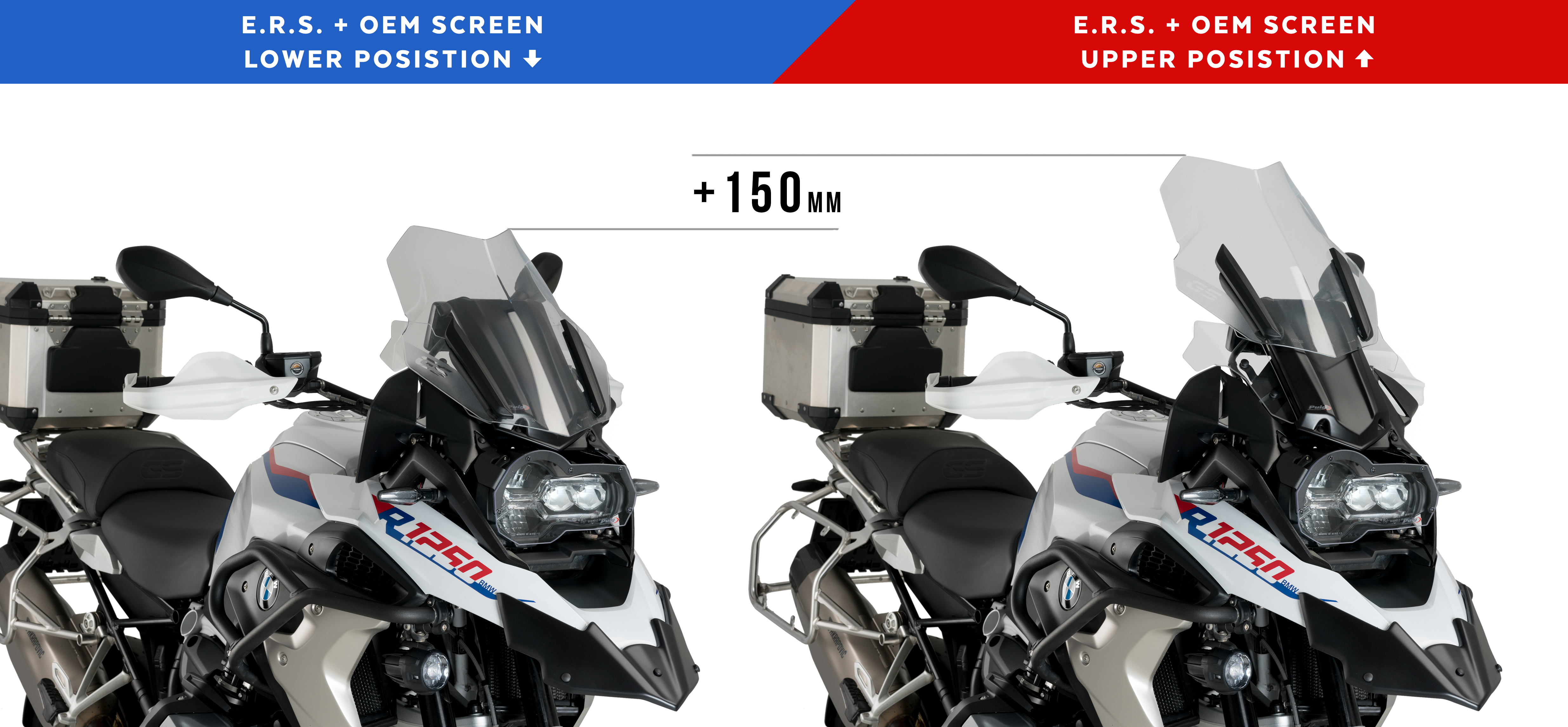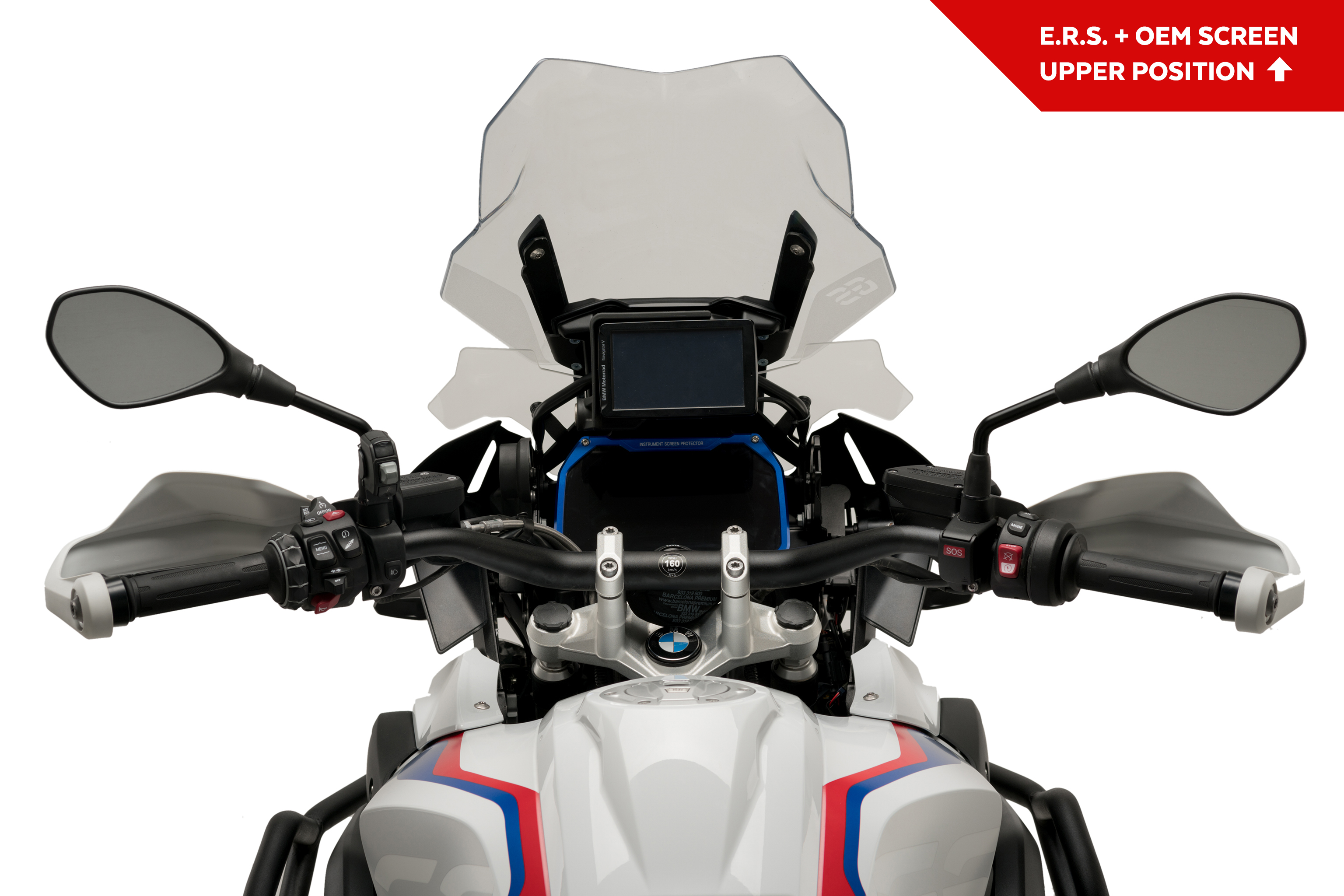 Le E.R.S. (Electronic Regulation System) est un mécanisme qui vous donne la possibilité de modifier, à tout moment pendant la conduite, la hauteur du pare-brise de votre BMW grâce à un bouton de type Joystick de nouvelle génération situé sur le guidon.