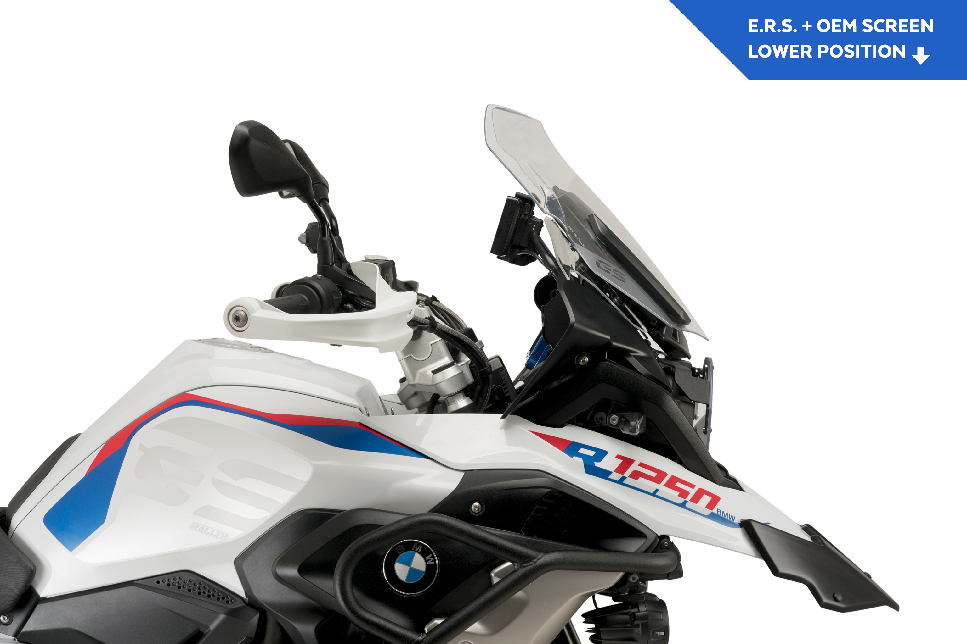 Le E.R.S. remplace le système BMW d'origine pour qu'il soit le plus intégré possible à l'avant de votre moto, pour renforcer et éviter les vibrations que possède le système de réglage de la bulle d'origine.