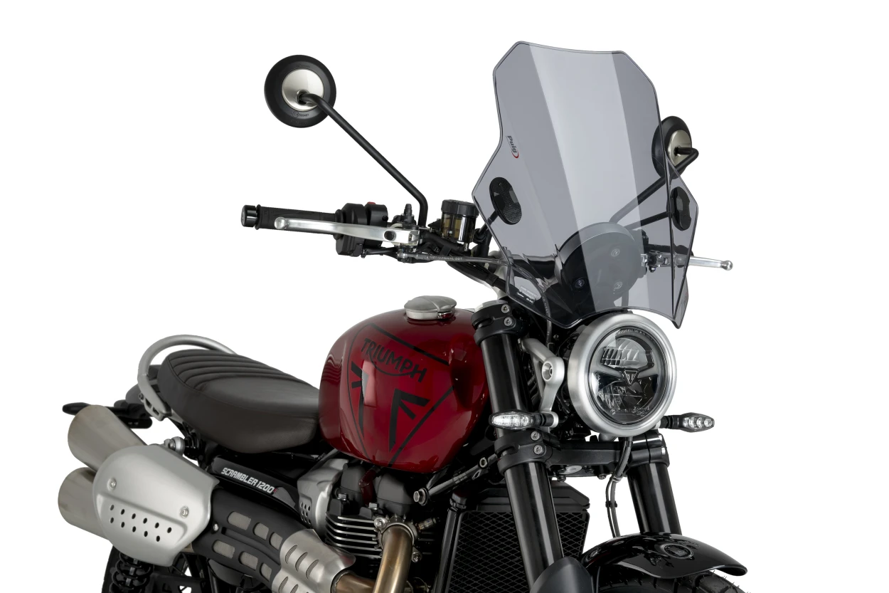Renouvelez l’image de votre moto et protégez-vous contre les intempéries qui pourraient survenir pendant le parcours avec le nouveau pare-brise universel Bat de Puig.