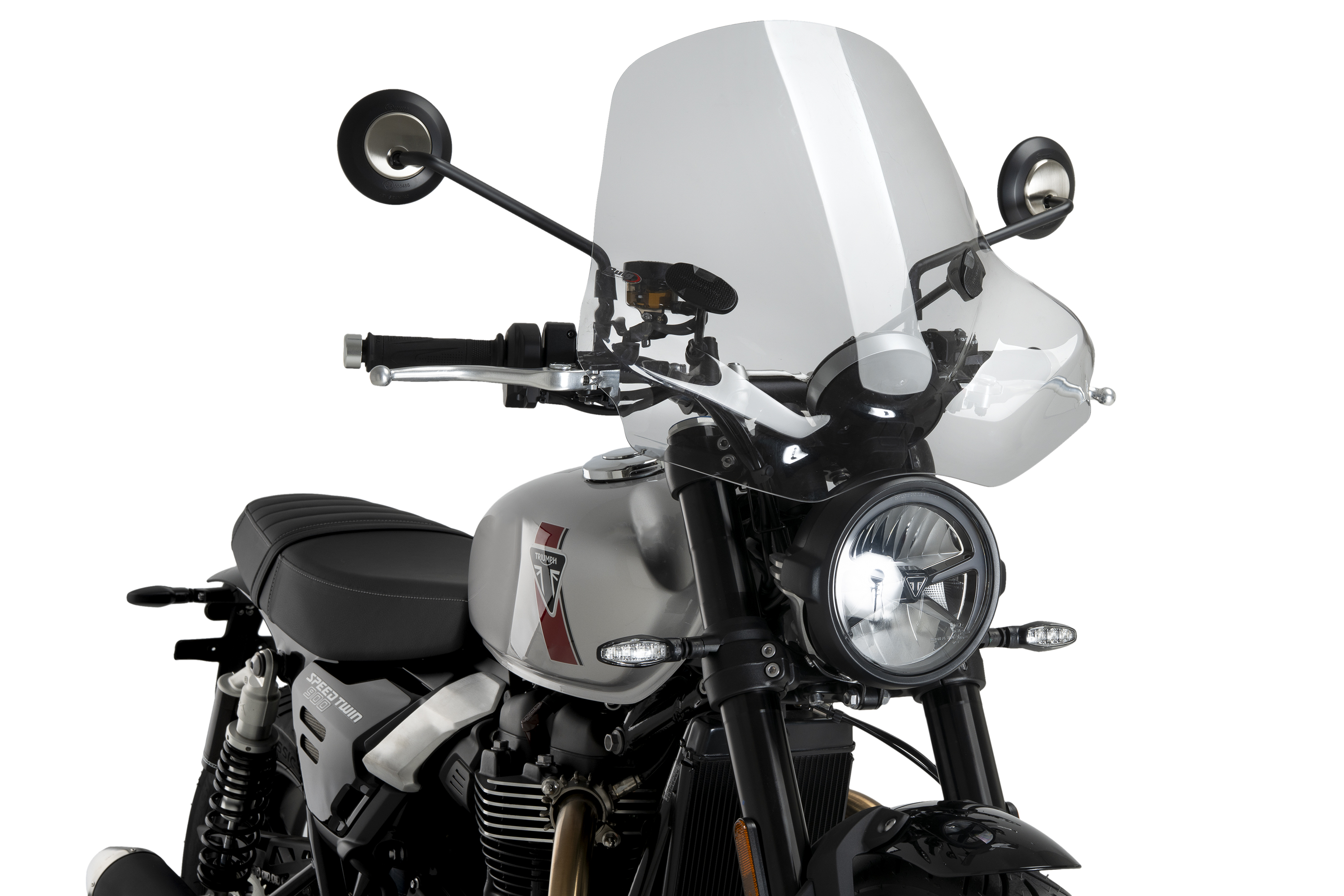 Afin que le nouveau pare-brise s'adapte également à l'esthétique de votre moto, Puig propose deux couleurs: transparent et fumé.