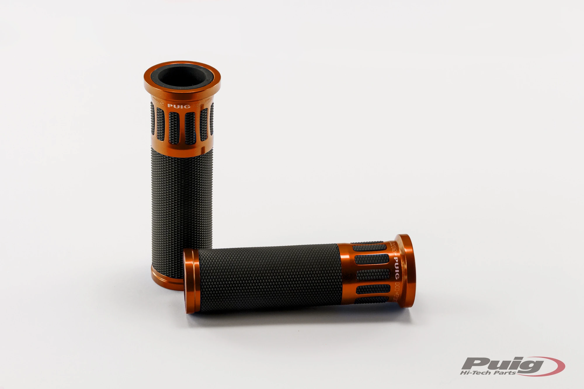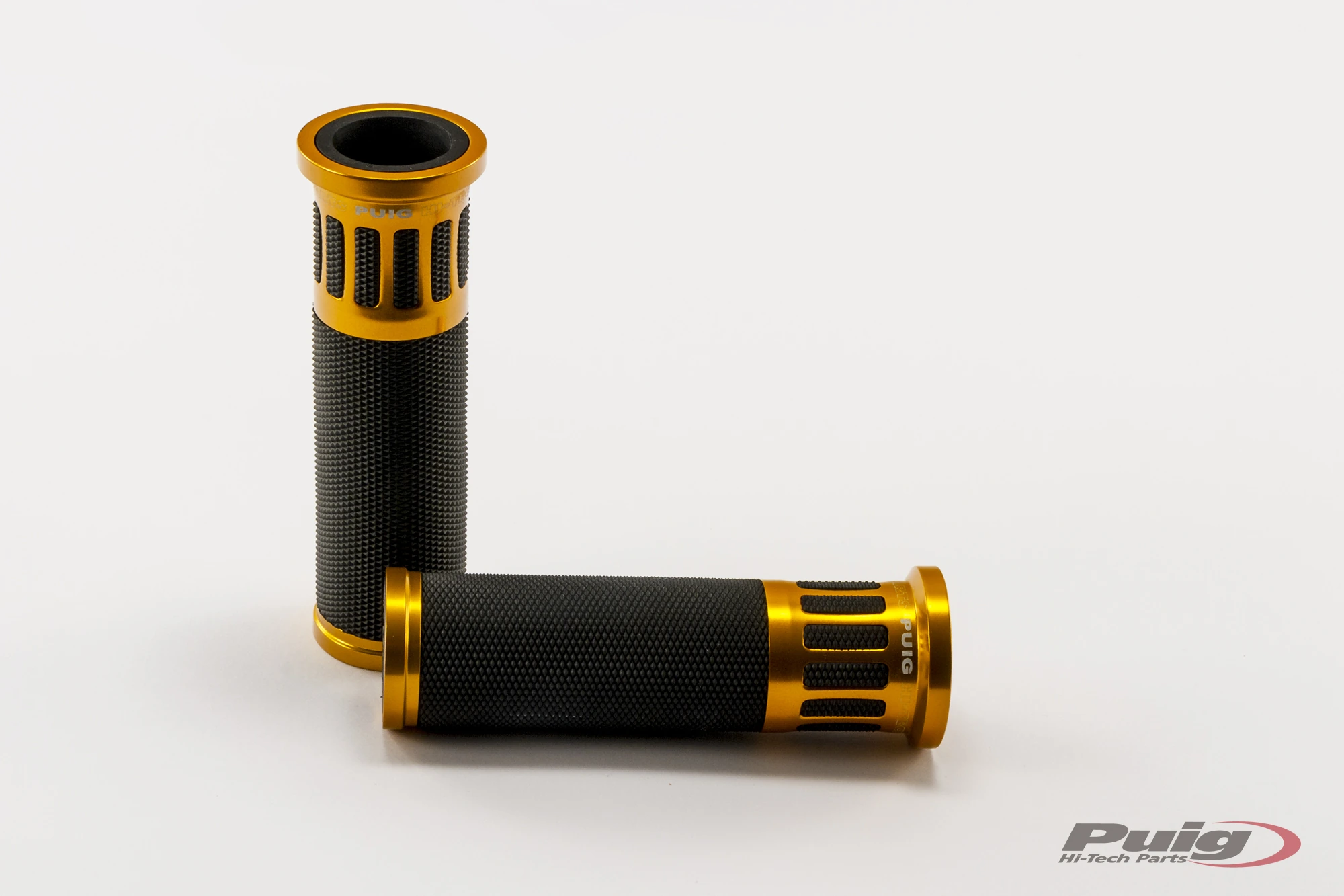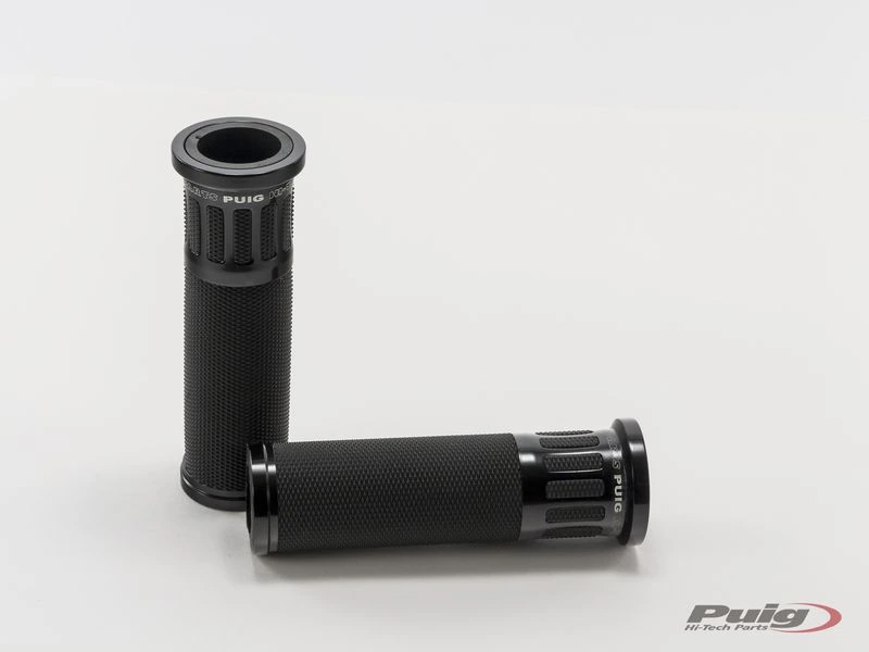 Les poignées Racing Puig ont été les premières  de la gamme et ont pour caractéristique principale leur simplicité de conception et un insert en aluminium anodisé disponible en différentes couleurs.