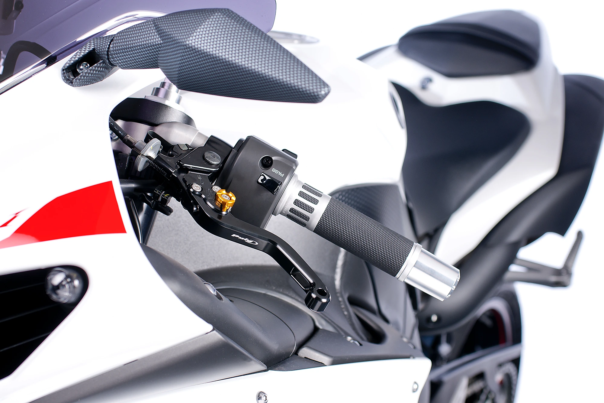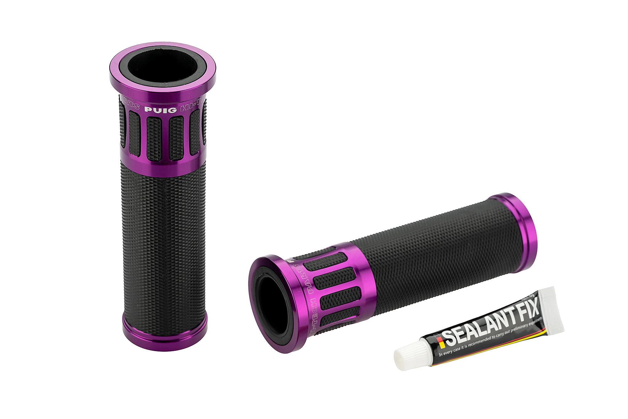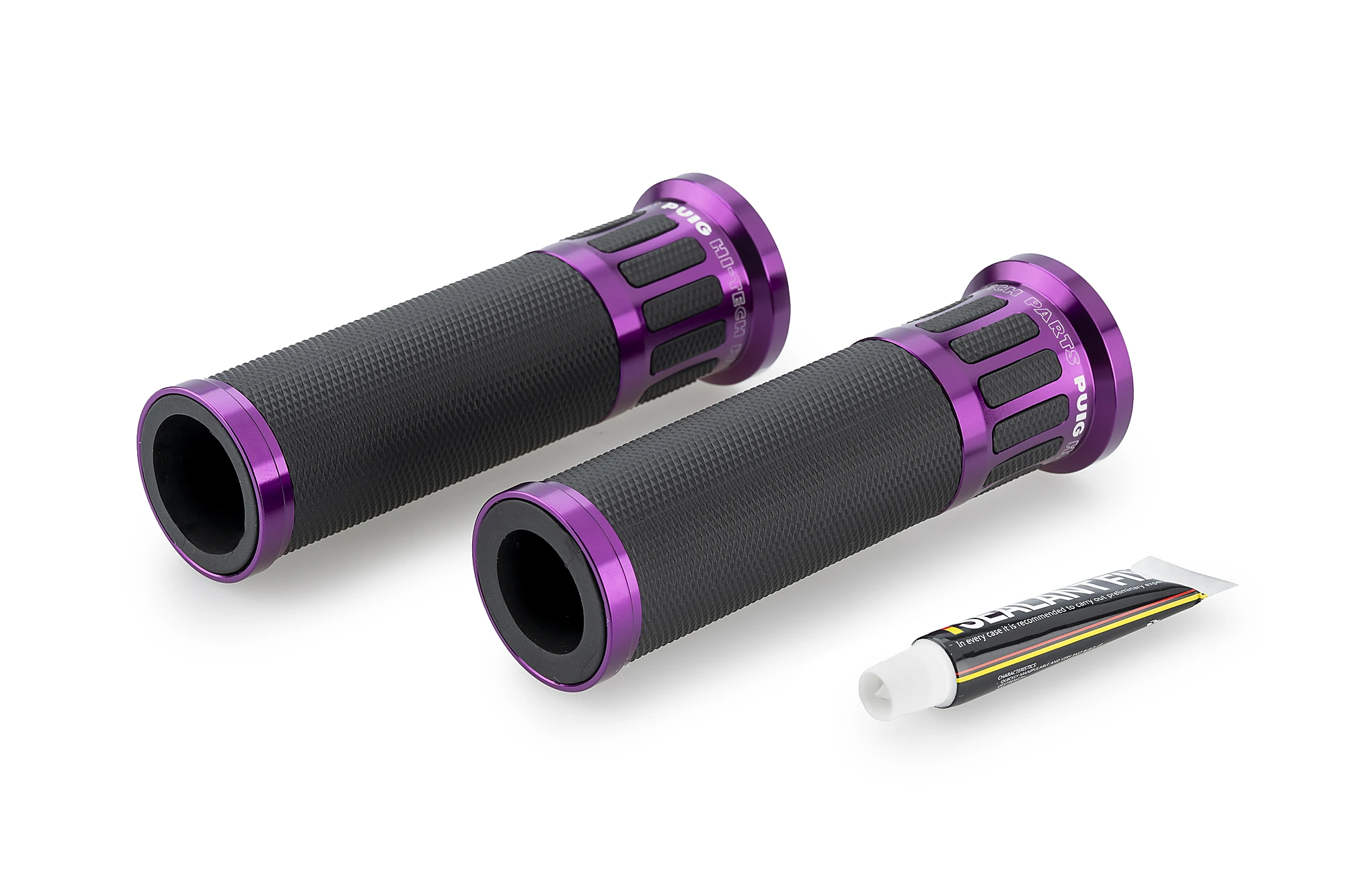 Les poignées Racing Puig ont été les premières  de la gamme et ont pour caractéristique principale leur simplicité de conception et un insert en aluminium anodisé disponible en différentes couleurs.