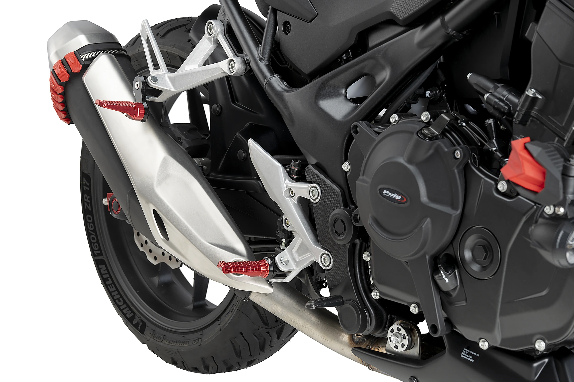 Afin de préserver l'esthétique de la moto, la  protection peut être achetée en finition mate et s’adapte au véhicule en la vissant sur le carter du moteur lui-même.
